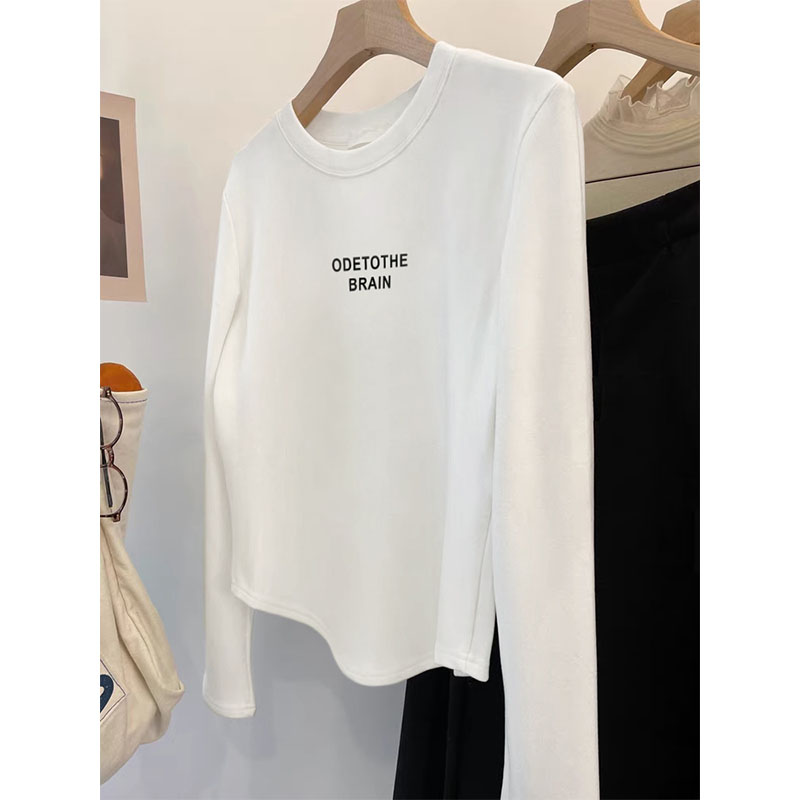 Женская майка, нижнее белье, футболка из чистого хлопка с длинным рукавом, стильная нишевая модель, изогнутый низ, приталенная, на плечо, модная
