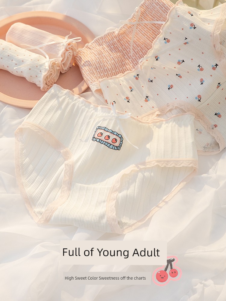 Нижнее белье для девочек, чистый хлопок, весь хлопок, антибактериальная ластовица, новинка 2025, сладкий стиль, милая девочка, средне-высокая талия, треугольные шорты, женские
