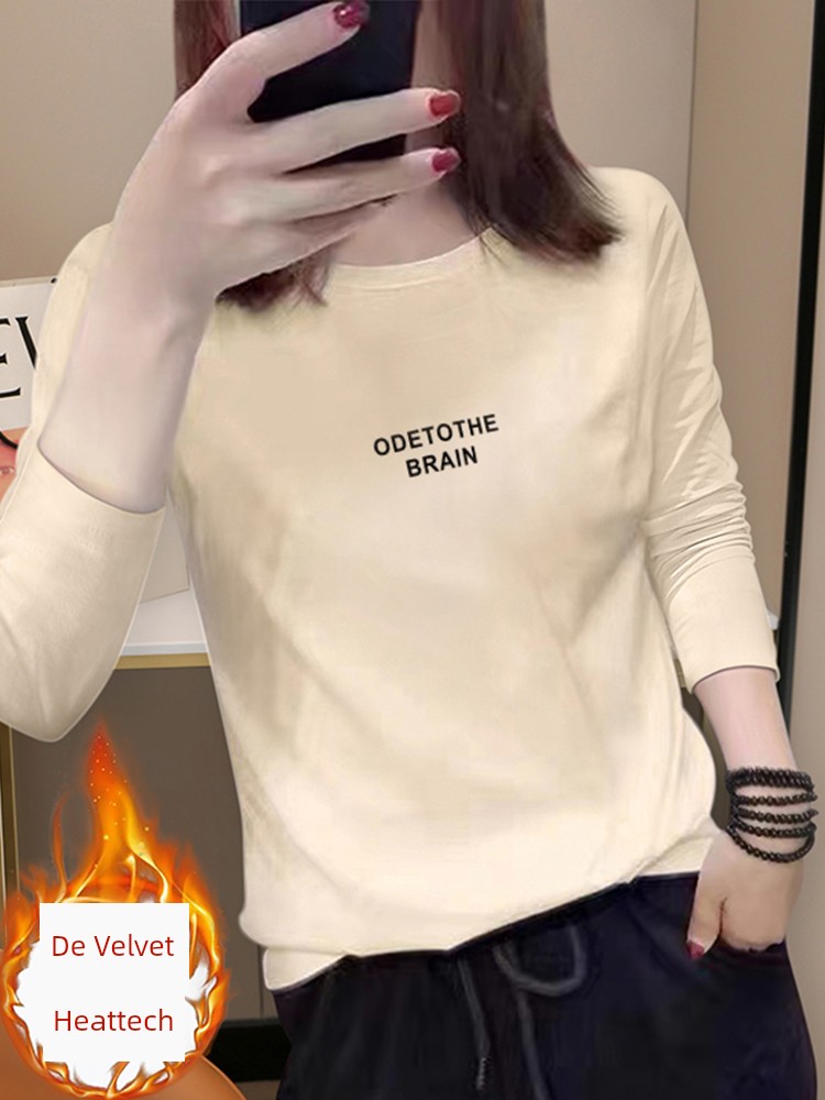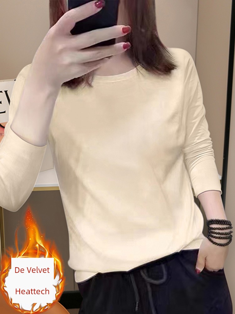 Белая базовая нижняя рубашка из дралона, женская внутренняя одежда, осенне-зимняя футболка с круглым вырезом и длинным рукавом, утолщенный бархатный топ с термоэффектом