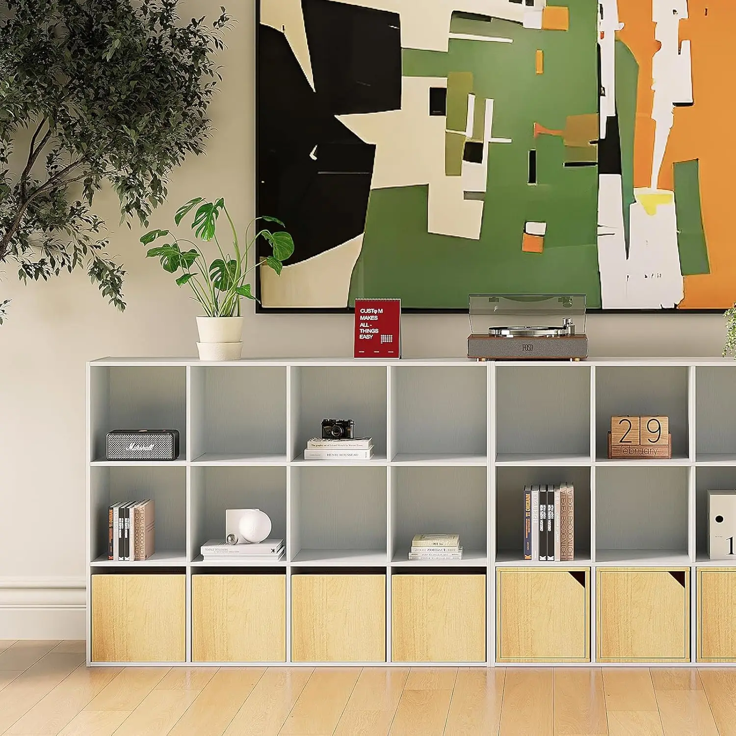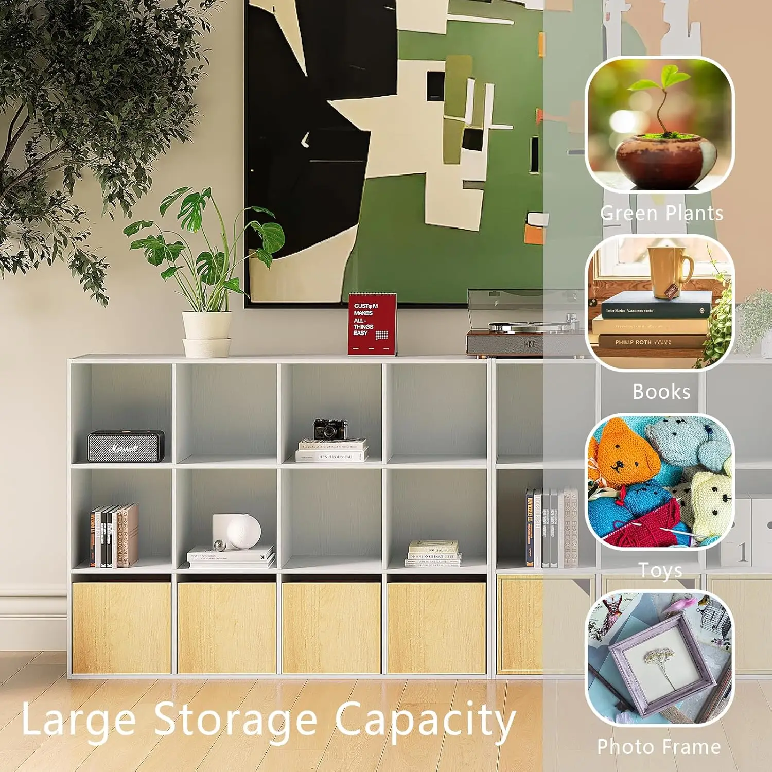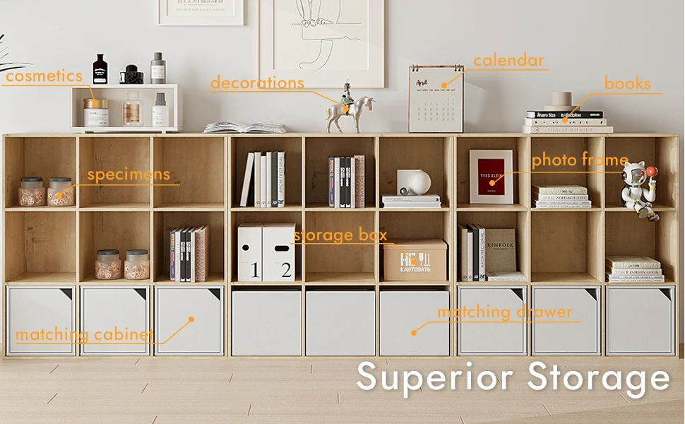 Белый дубовый деревянный органайзер для хранения с 12 отделениями и закрытой задней панелью, книжная полка, витрина, шкаф для дома, офиса, школы