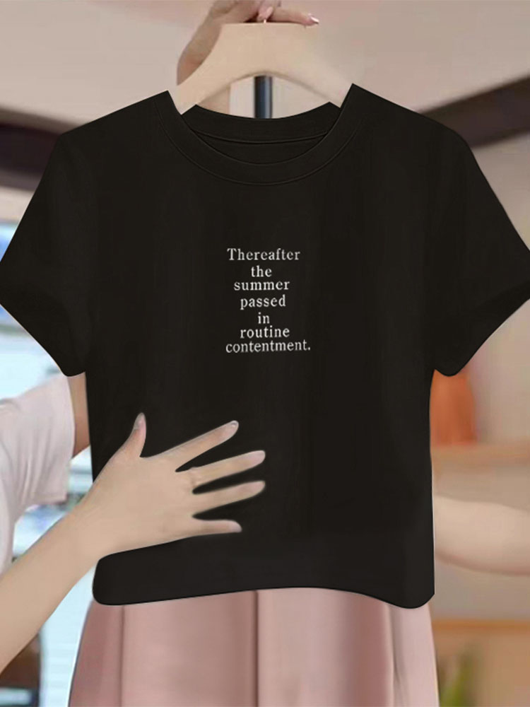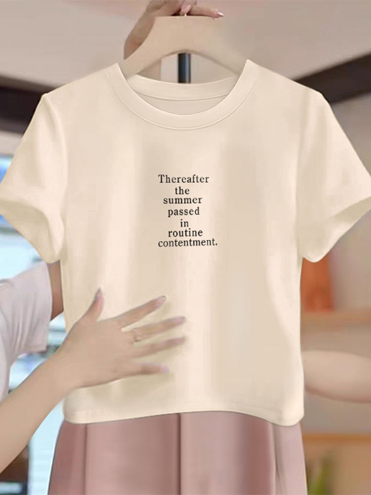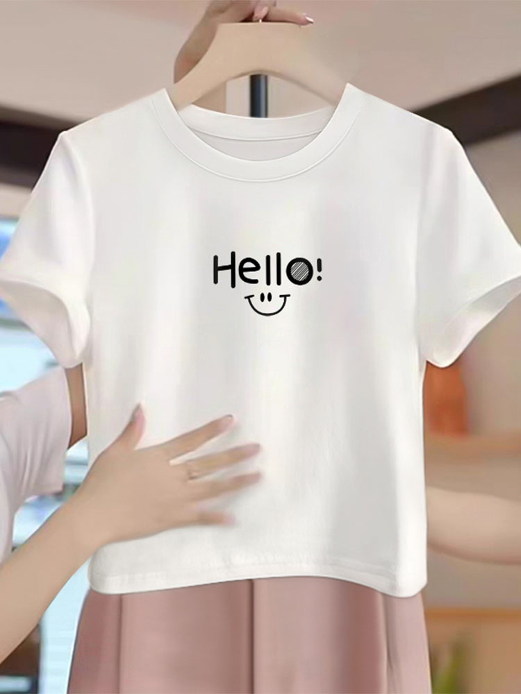 Белая футболка с круглым вырезом и короткими рукавами Женская летняя 2025 Новая дизайнерская модель Маленькое плечо с высокой талией Топ с контролем талии