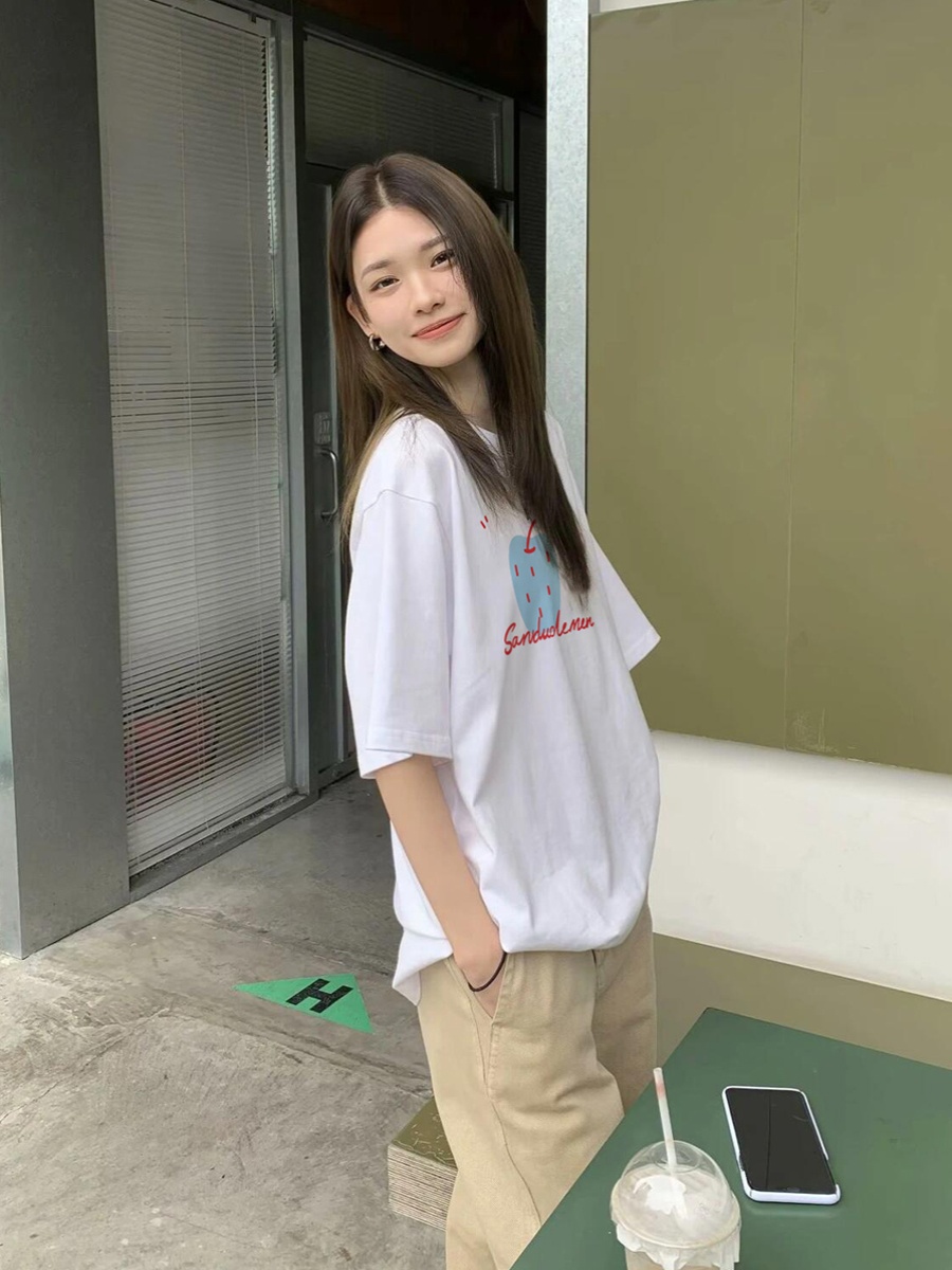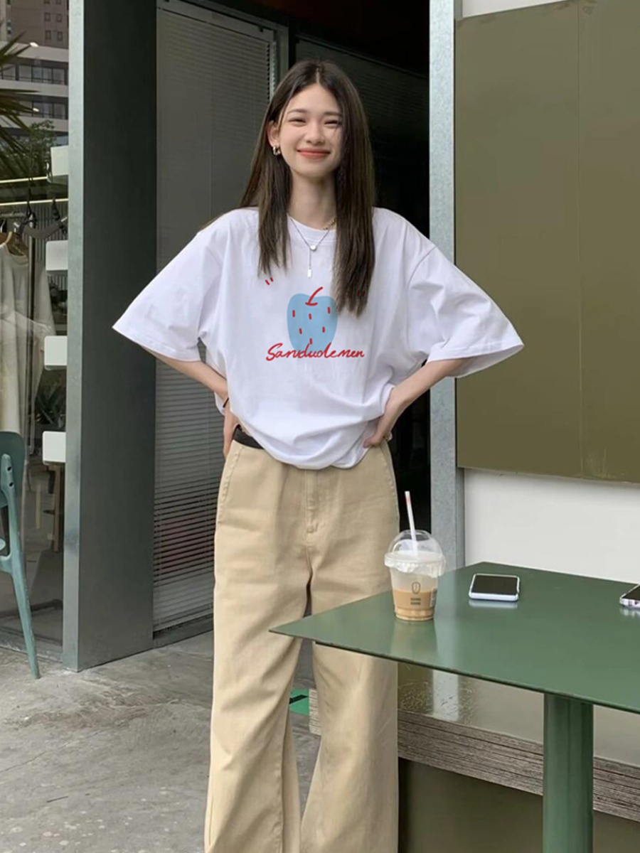 Белая Футболка с Круглым Вырезом и Короткой Рукавом Женская Летняя Новая Дизайнерская Футболка Niche Loose Slimming Cotton Shoulder Tops Женские