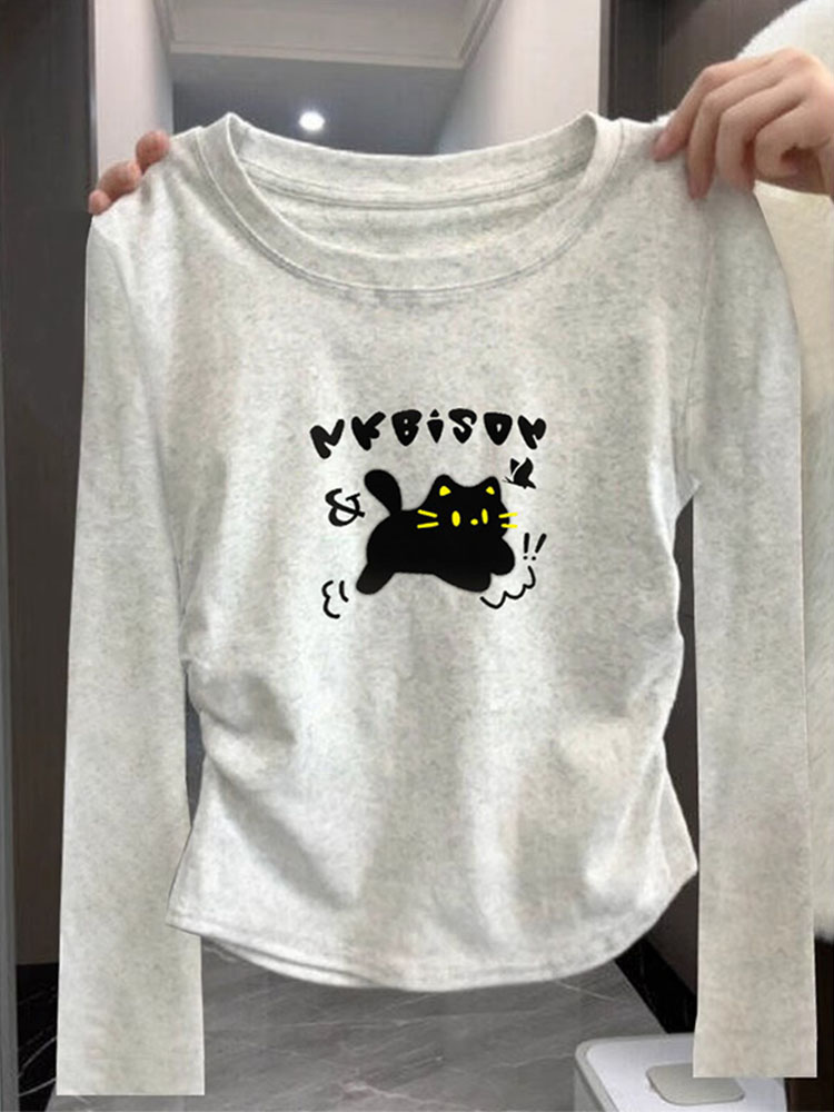 Женская короткая нижняя одежда с 13 линиями, женская весна/осень, новый дизайн, нишевый стиль, сексуальная приталенная футболка с длинными рукавами