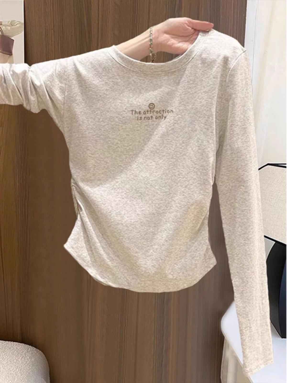 Женская одежда, новый дизайн для ранней осени, футболка из чистого хлопка с длинными рукавами, женский утягивающий пуловер с завязками
