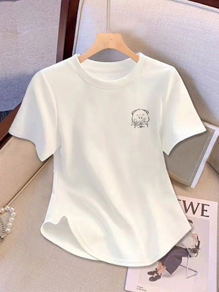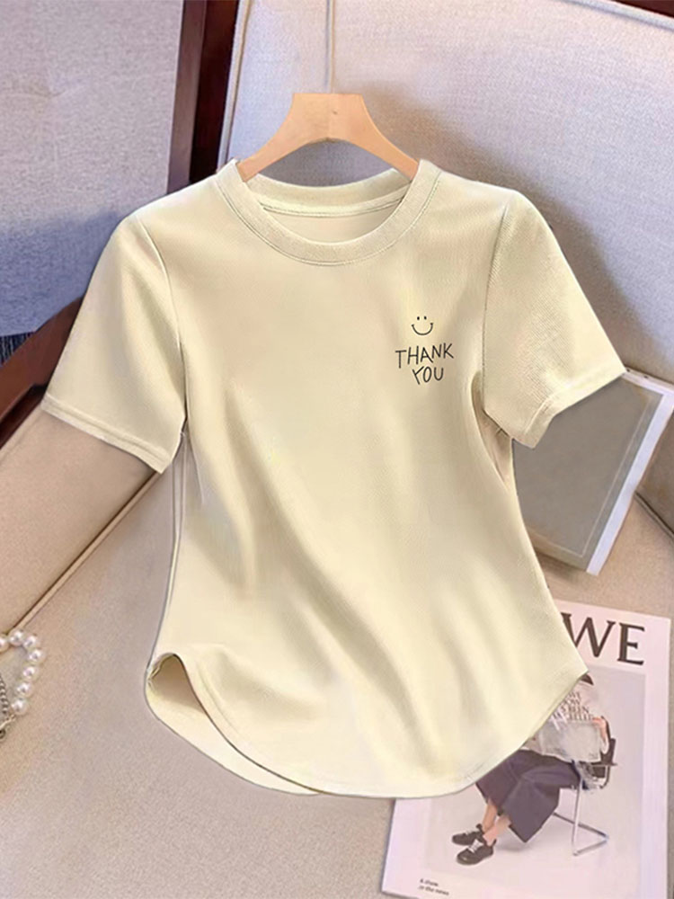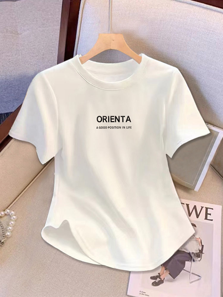 Женская одежда, футболка с коротким рукавом с асимметричным круглым подолом в виде дуги, женская летняя новинка, стиль K, узкая половина рукава