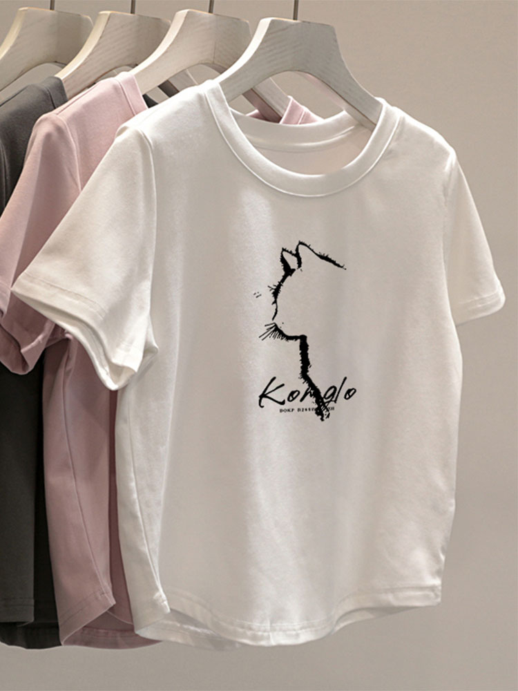 Женская одежда, новинка, корейский стиль, чистый хлопок, футболка с коротким рукавом, женская футболка с круглым вырезом, половина рукава, белая модная блузка 2025 года, лето