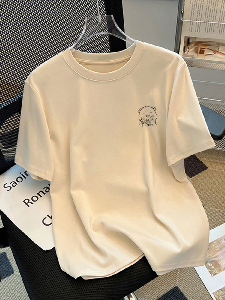 Женская одежда, 13 линий, плечо, свободный, стройный, топ 2025, летняя новинка, свободная белая футболка с коротким рукавом, женская мода