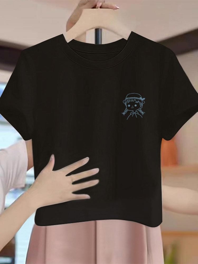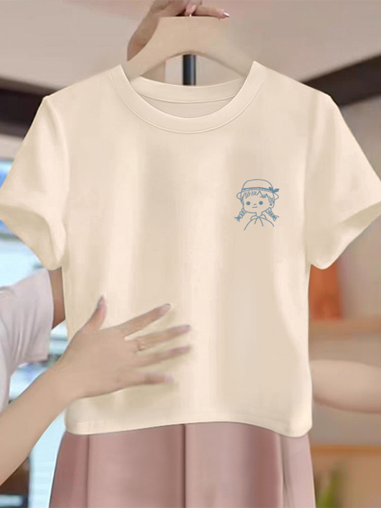 Женская одежда в 13 линиях Лето 2025 Новая Чистая Хлопковая Футболка с коротким рукавом Женская белая мода с круглым вырезом, модные плечевые топы