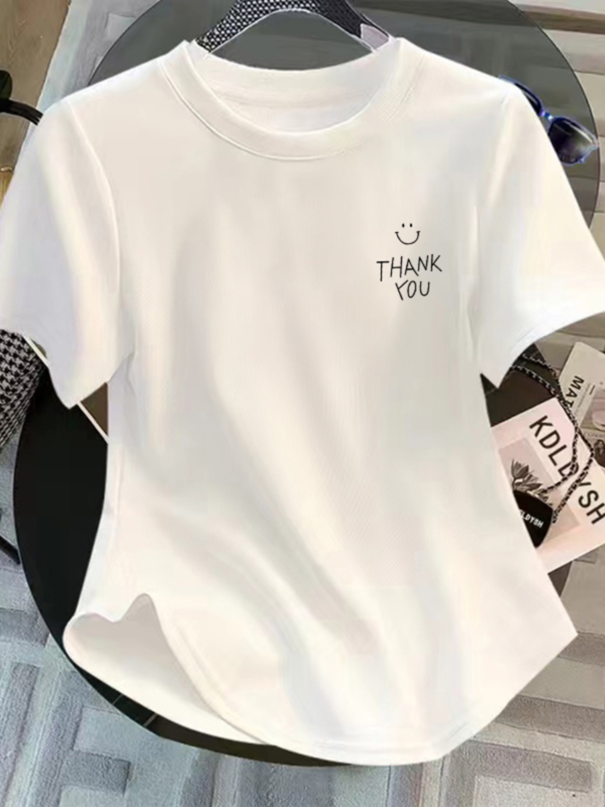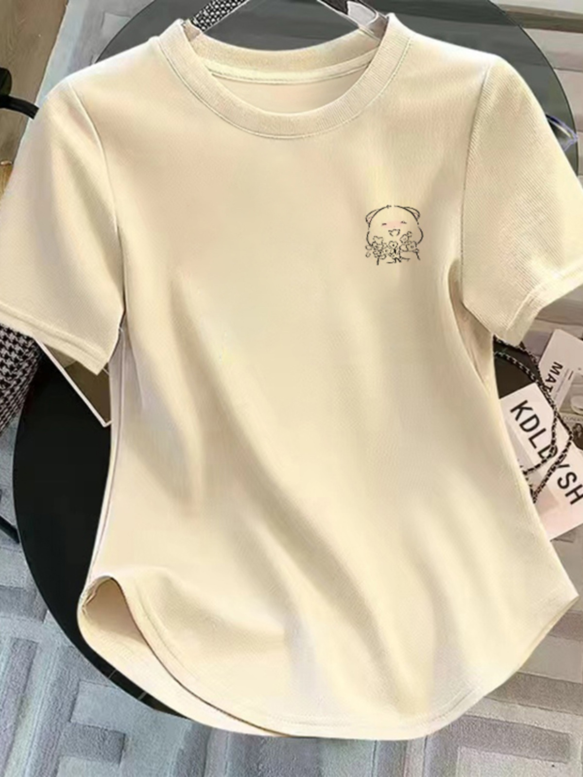 Женская одежда, 13 линий, 2025, лето, плечо, чистый хлопок, футболка с короткими рукавами, женская, асимметричный низ, модный универсальный топ