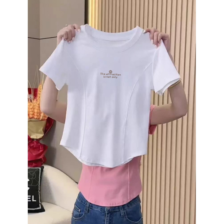Женская одежда, хлопковая шикарная футболка с коротким рукавом, летняя, тонкая, короткая, визуально стройнящая, асимметричная футболка с половиной рукава