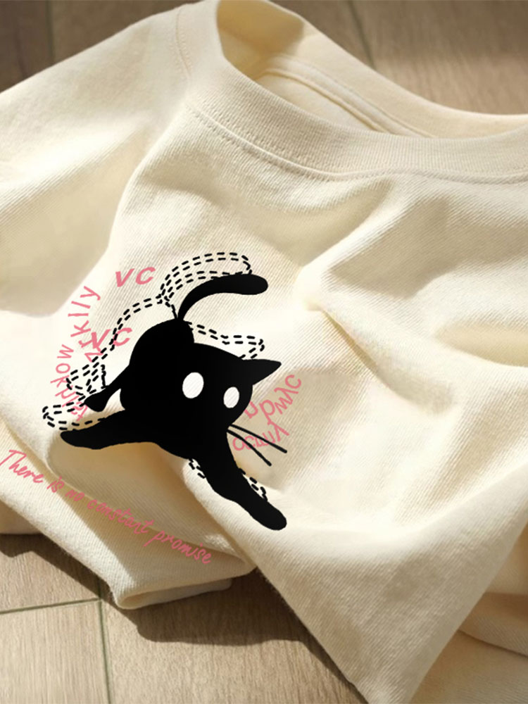Женская хлопковая футболка с коротким рукавом с принтом кошки, летняя новинка 2025, свободный топ в молодежном стиле, в стиле западной моды, больших размеров, с круглым вырезом