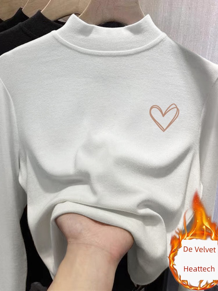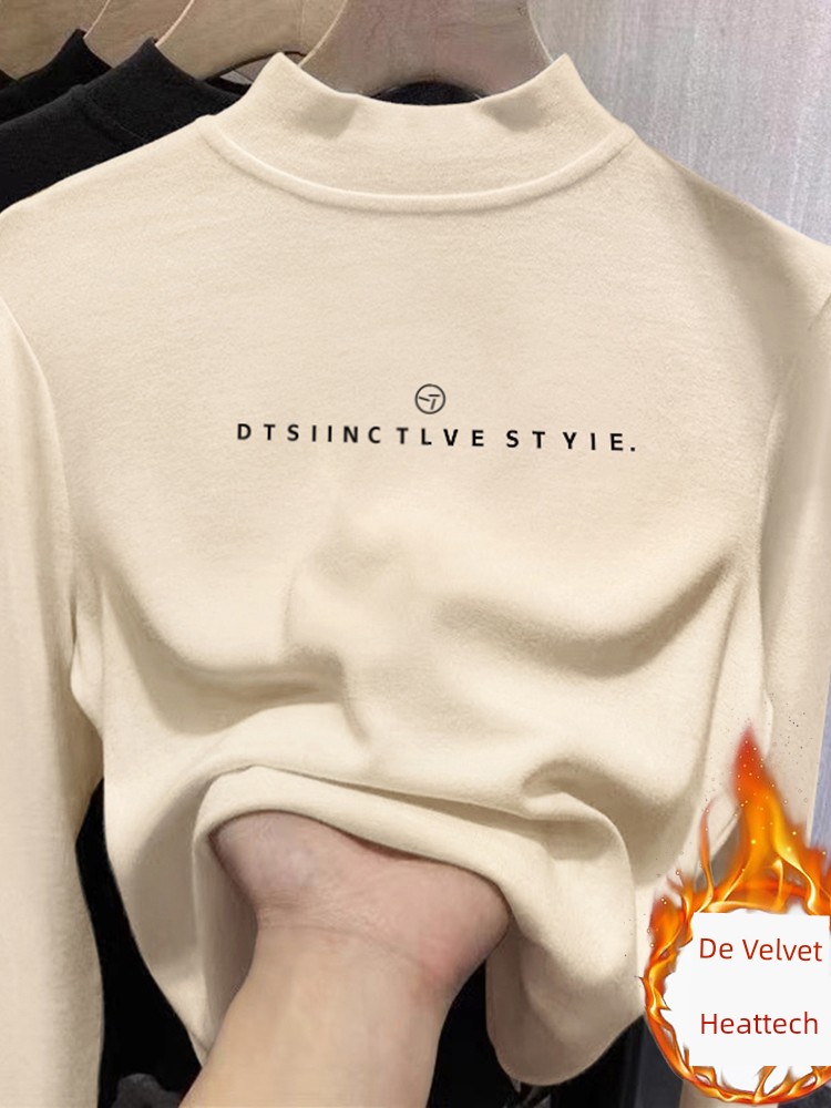 Женская рубашка из дралона с полувысоким воротником для нижней одежды, новинка женской одежды 2025, осень-зима, флисовая, утолщенная, в западном стиле, нижняя одежда, термофутболка с длинным рукавом