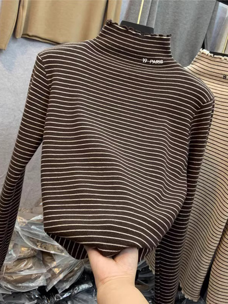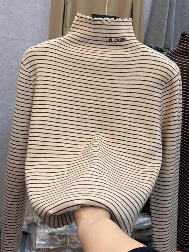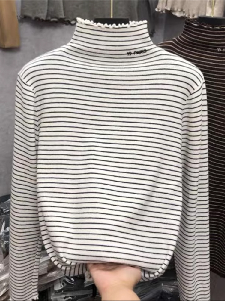 Женская нижняя рубашка с полугольфом из дралона, осень и зима, утепленная флисом, приталенная, стройнящая, в полоску, Isn, внутренняя одежда, футболка с длинными рукавами, топы