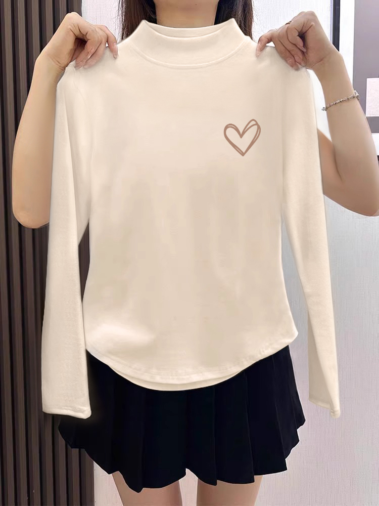 Женская футболка с полувысоким воротом из дрилона, с длинным рукавом, женская осенне-зимняя стильная нижняя одежда с изогнутым подолом, с флисовой подкладкой, теплая футболка