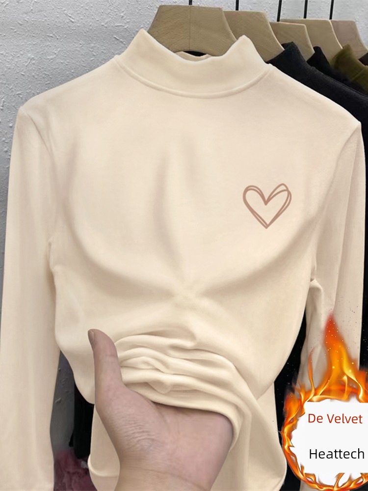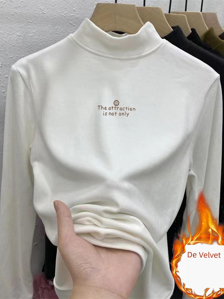 Женская нижняя рубашка из дралона с полу-водолазкой, узкий силуэт, осенне-зимняя утолщенная флисовая нижняя одежда в западном стиле, футболка с длинным рукавом со средней воротником