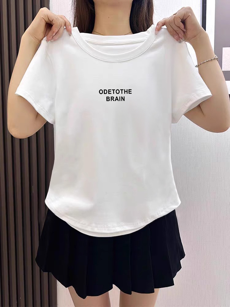 Женская футболка с коротким рукавом с открытыми плечами Женская Летняя 2025 Новое поступление Круглый вырез Короткий внутренний износ Стройные топы Мода