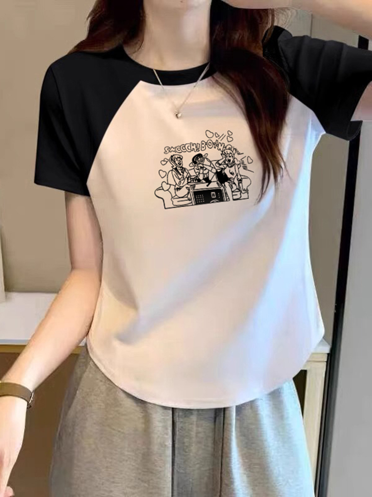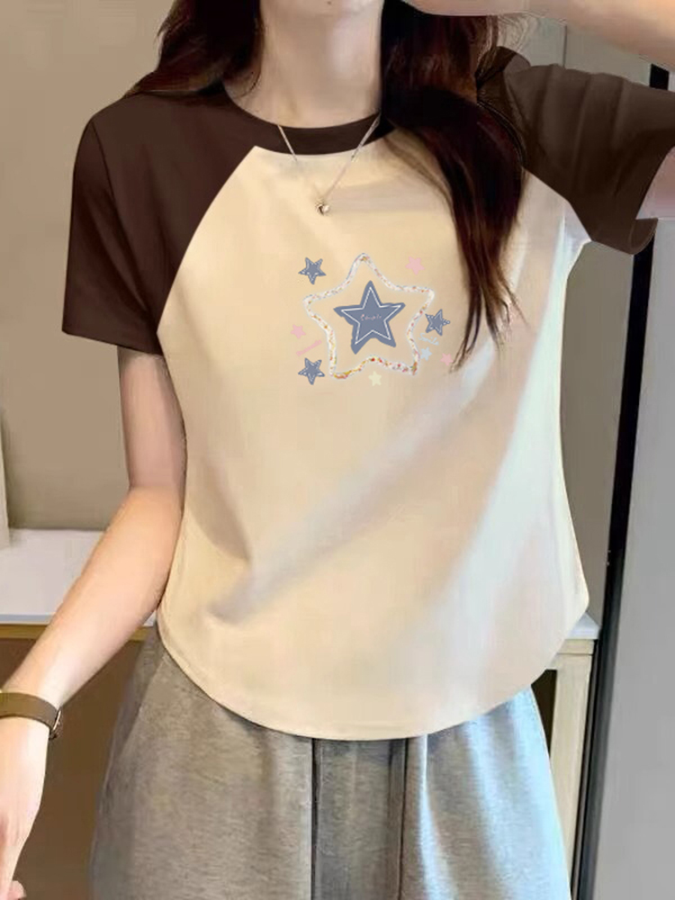 Футболка с коротким рукавом XINGX Print Shoulder для женщин, новинка лета 2025, стройнящая нижняя рубашка из чистого хлопка, стильные короткие топ