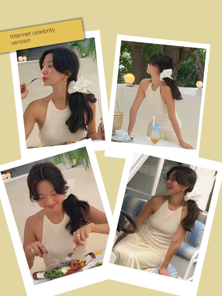 Заколка для волос в стиле Чжао Лусы, большая кишечная резинка для волос, женский интернет-знаменитость, атмосфера, аксессуары для волос, веревка для волос, французский белый кружевной ободок, аксессуары для волос