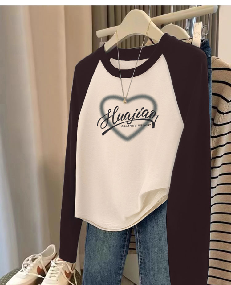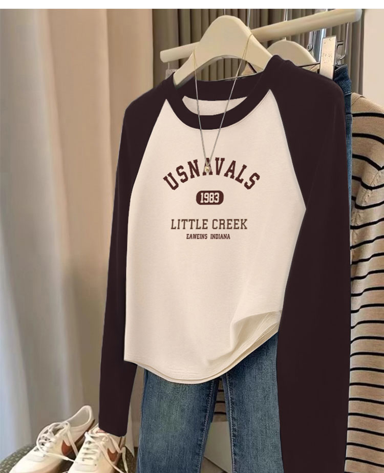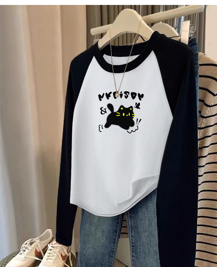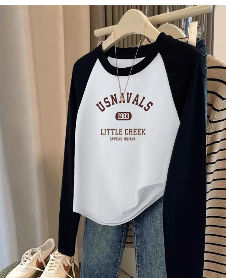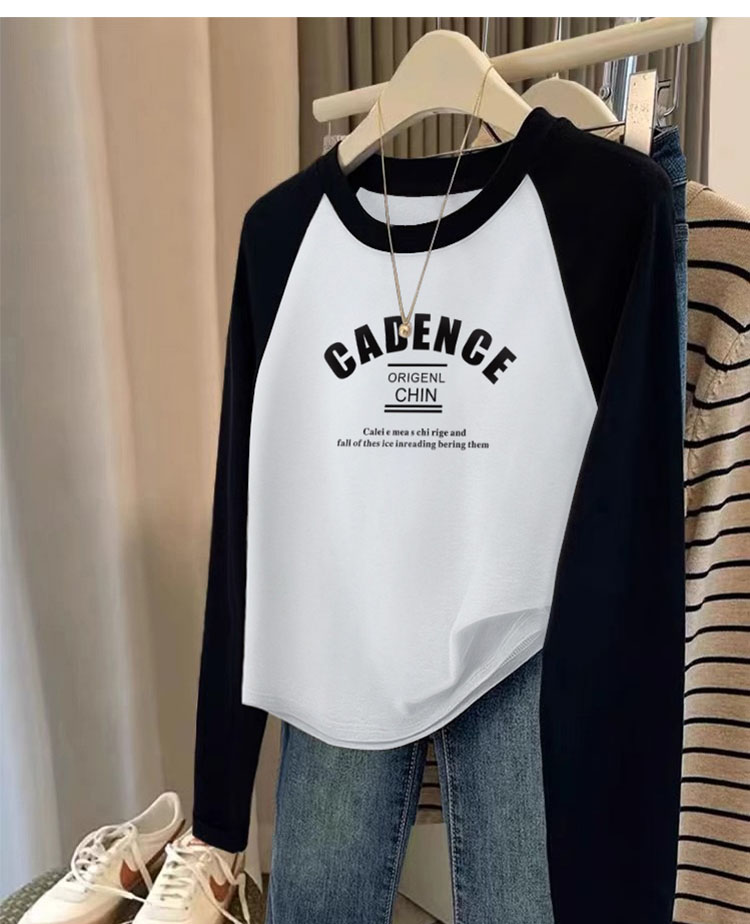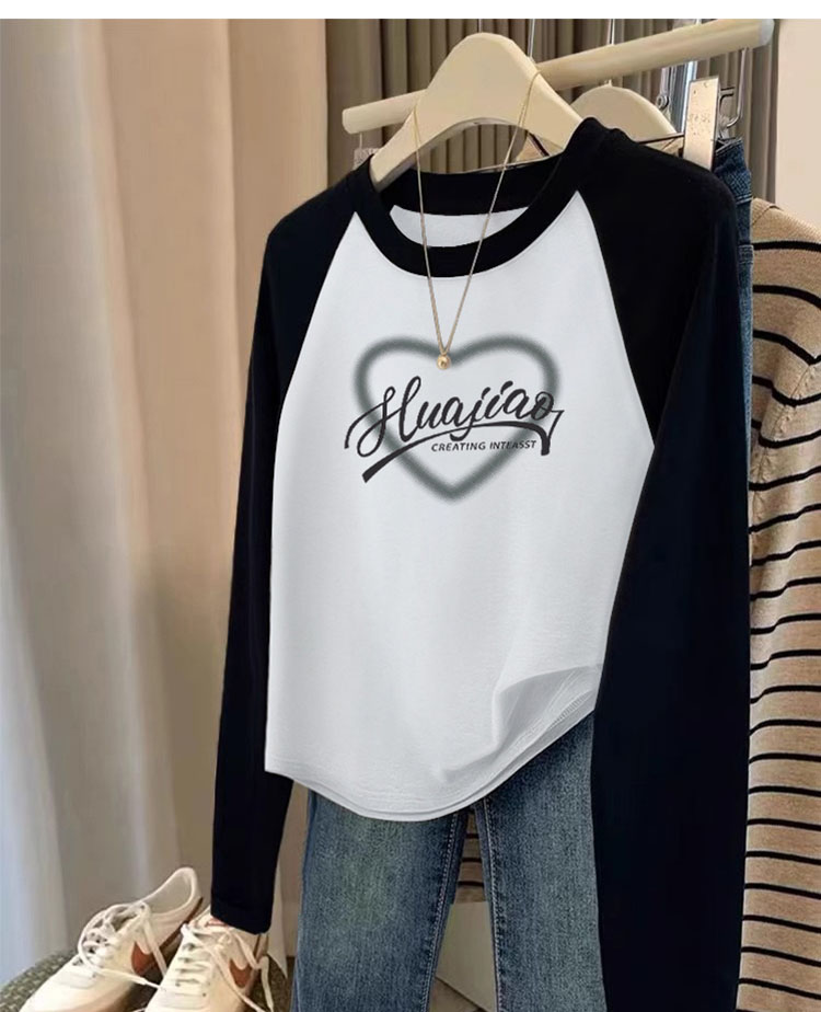 2025春季新款插肩长袖T恤 短款小众欧货纯棉不对称下摆上衣潮