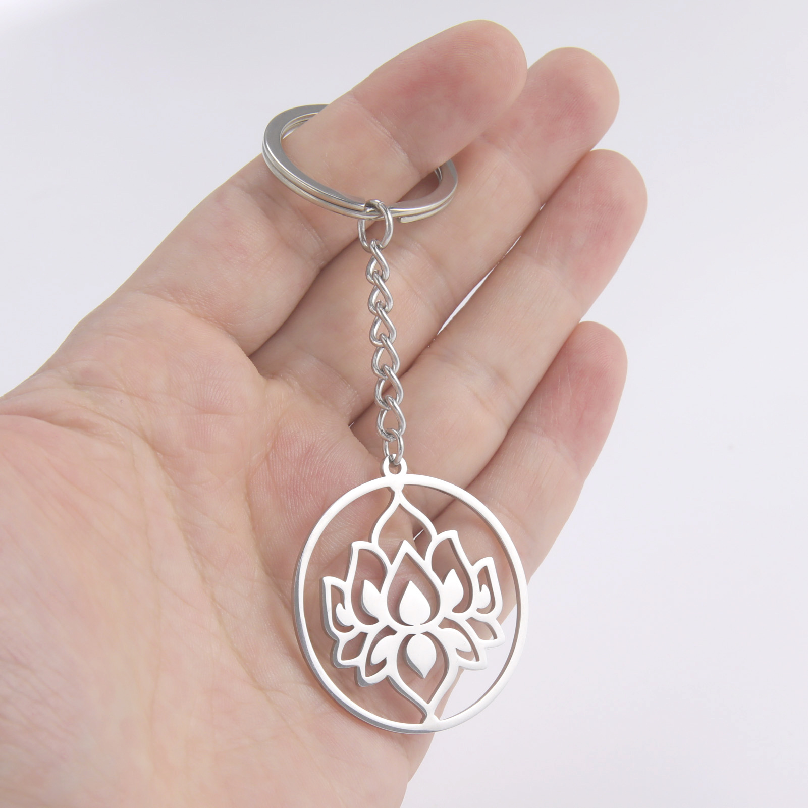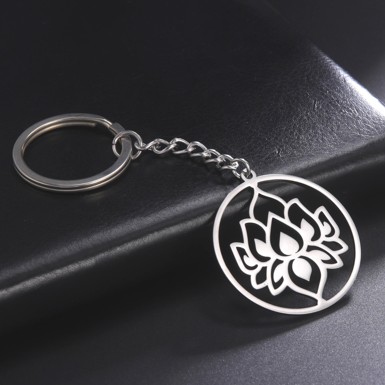 Ring Lotus Pattern Stainless Steel Titanium Key Chain