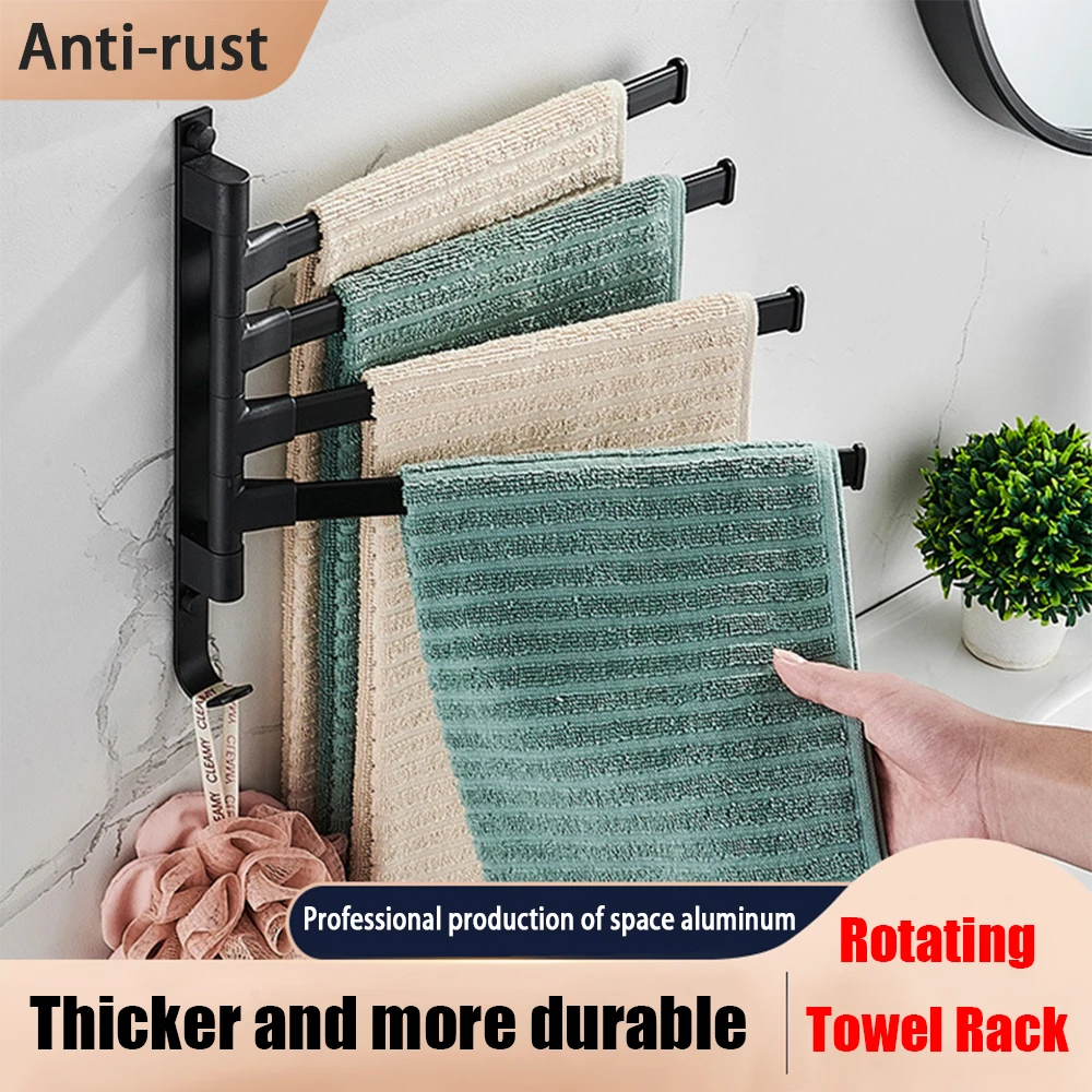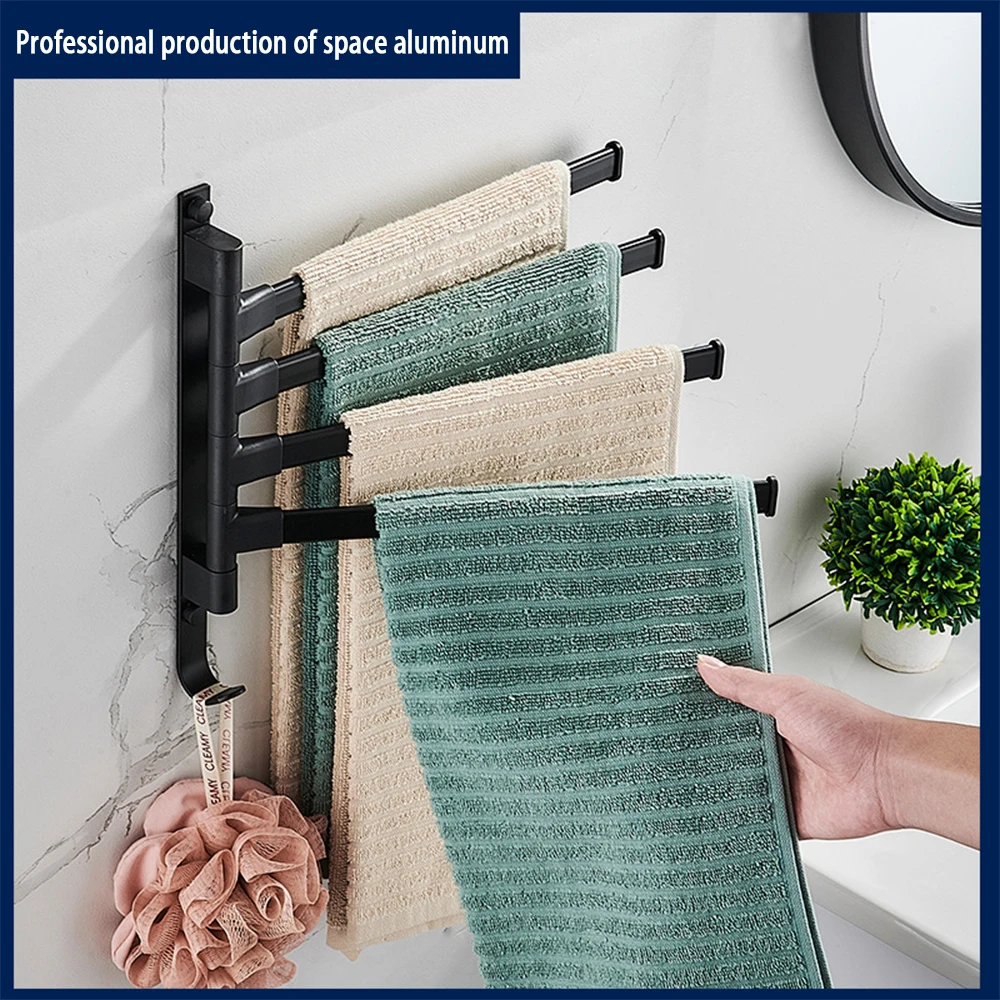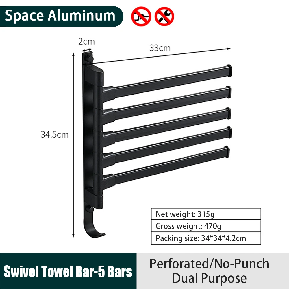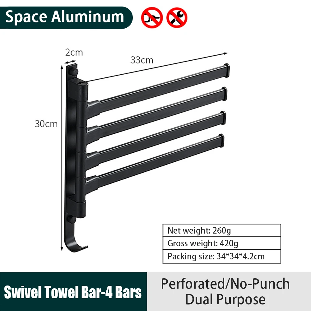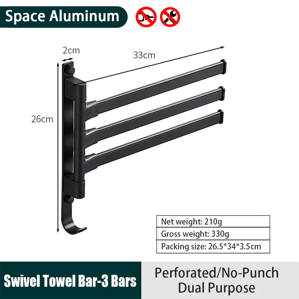 多功能旋转太空铝毛巾架 - 免打孔/打孔安装