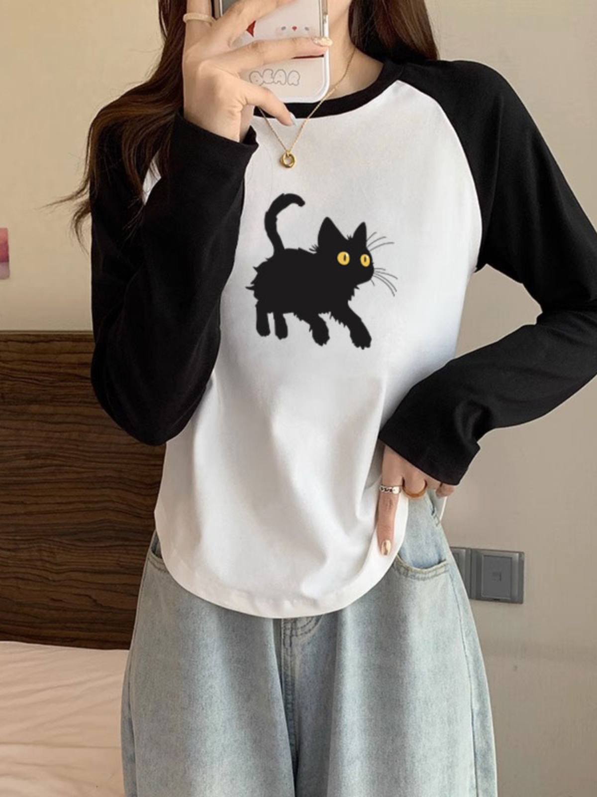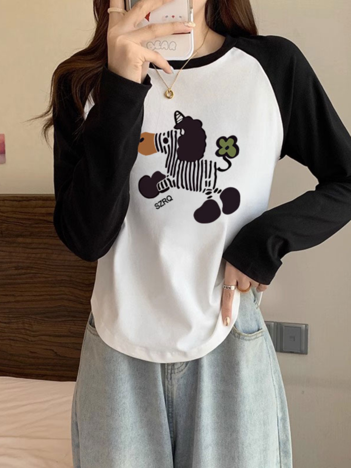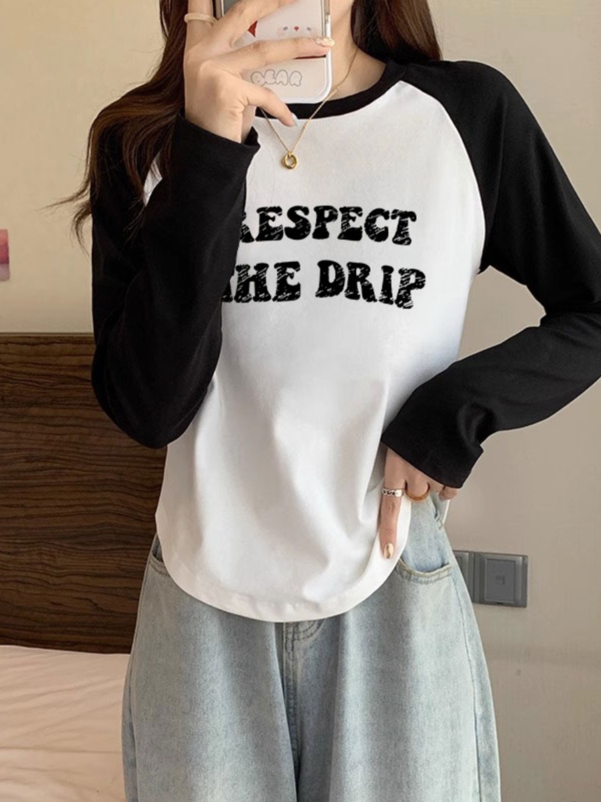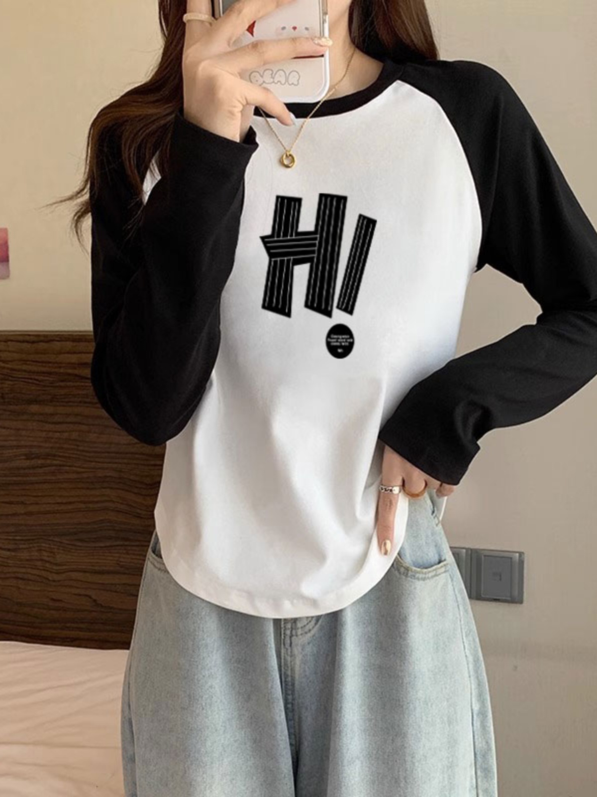 美式复古撞色长袖T恤 女秋季冬季2025新款小众设计内搭打底衫上衣