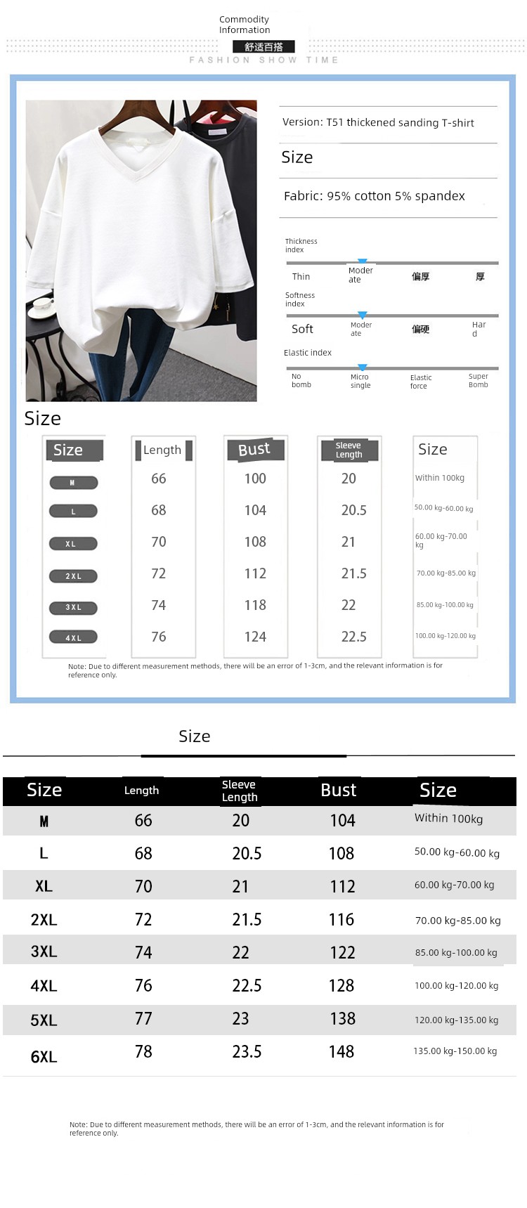美式复古短袖纯棉T恤 女大码 加肥加大码女士夏季2025新款设计感150.00kg V领上衣