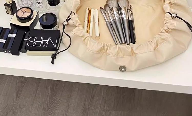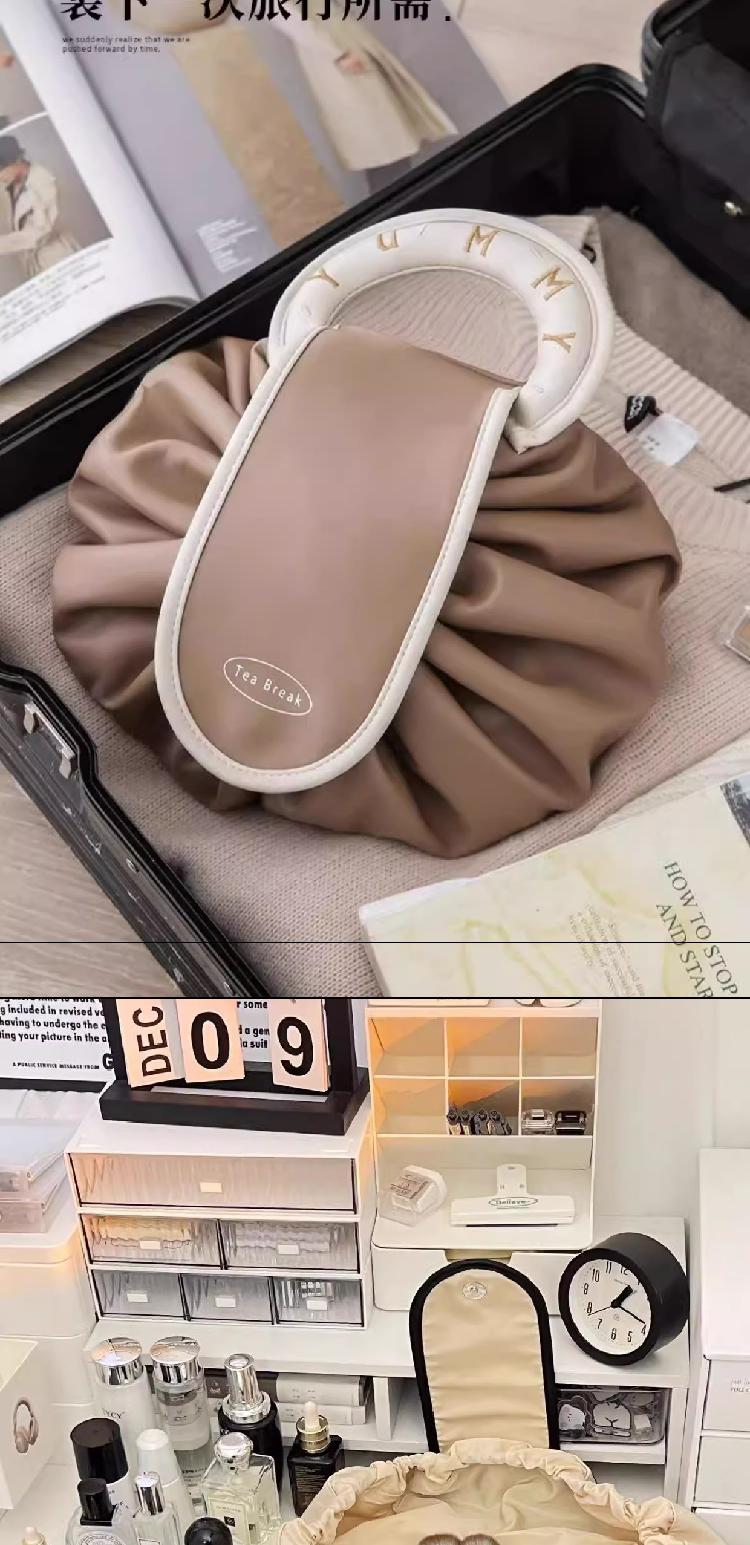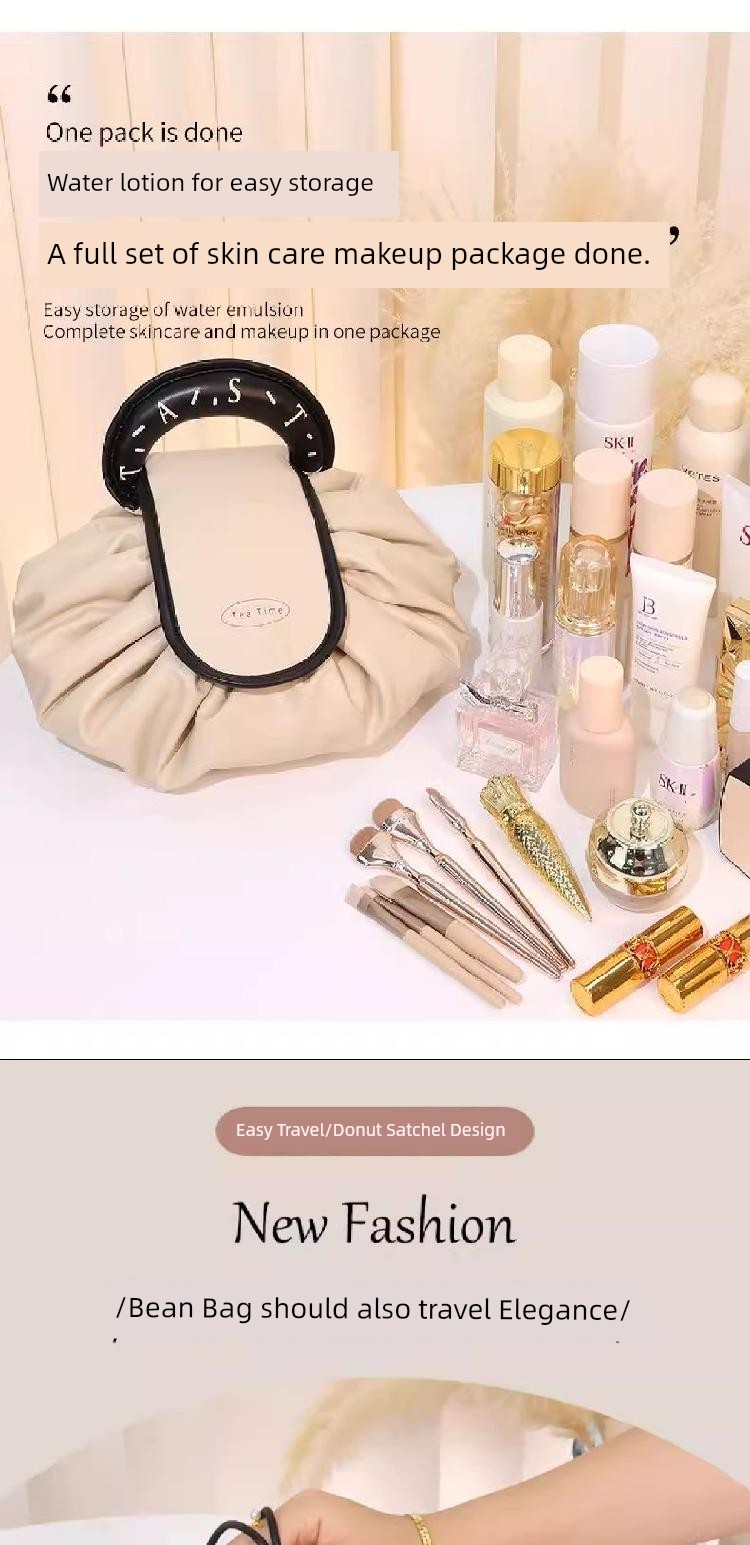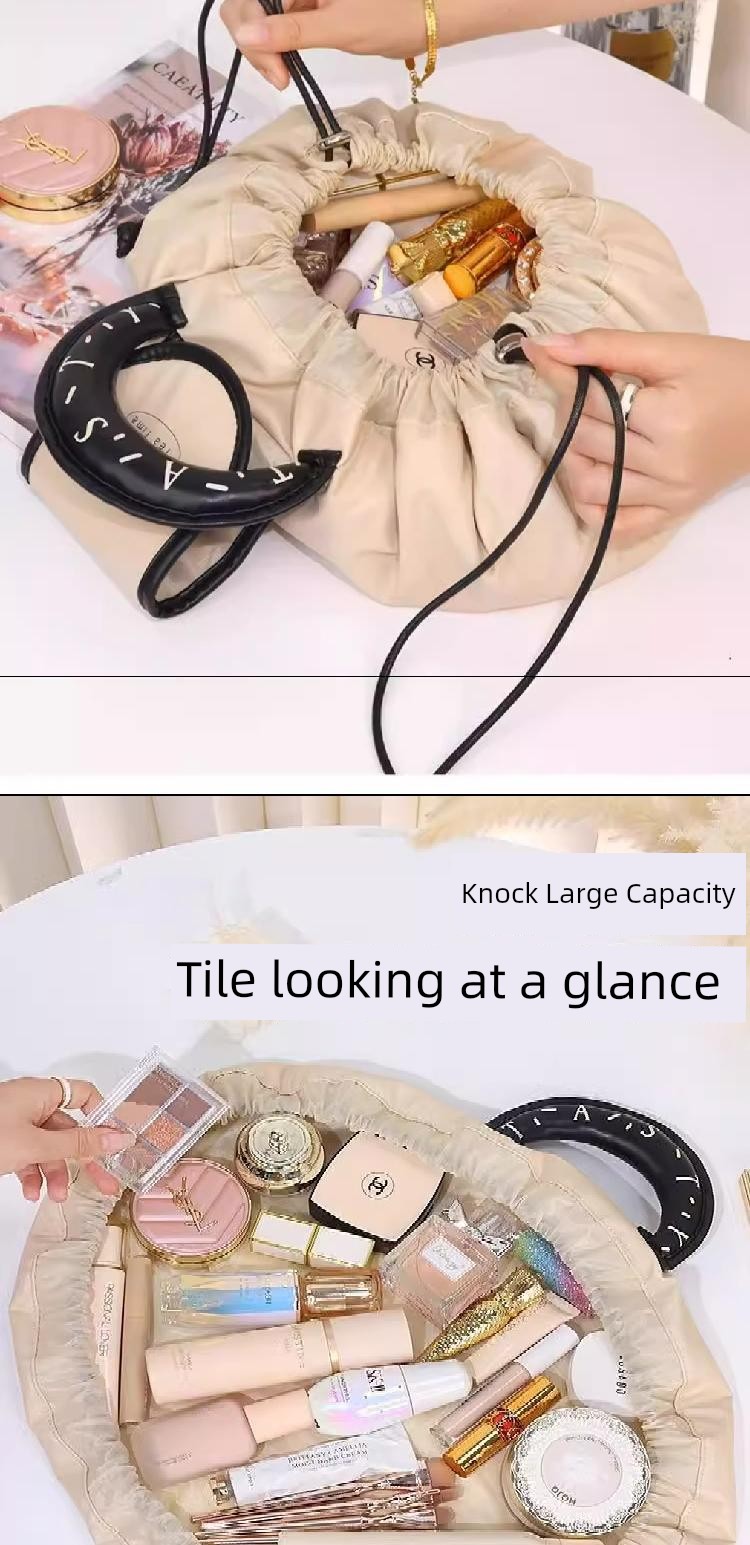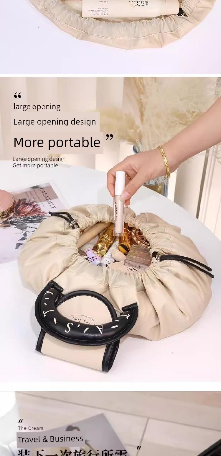 豆袋化妆包 女士大容量 2024新款便携旅行收纳抽绳商务出差洗漱包手提包