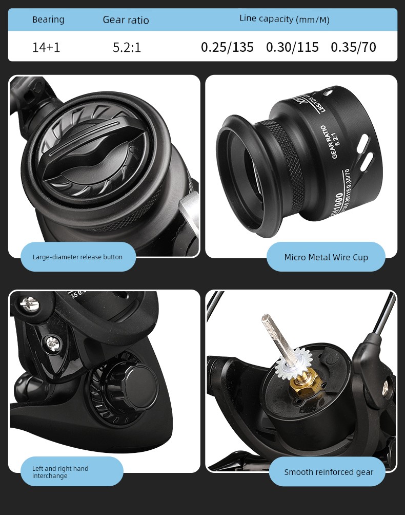 beginners suggest spinning wheels. This product is equipped with all-metal spinning wheels