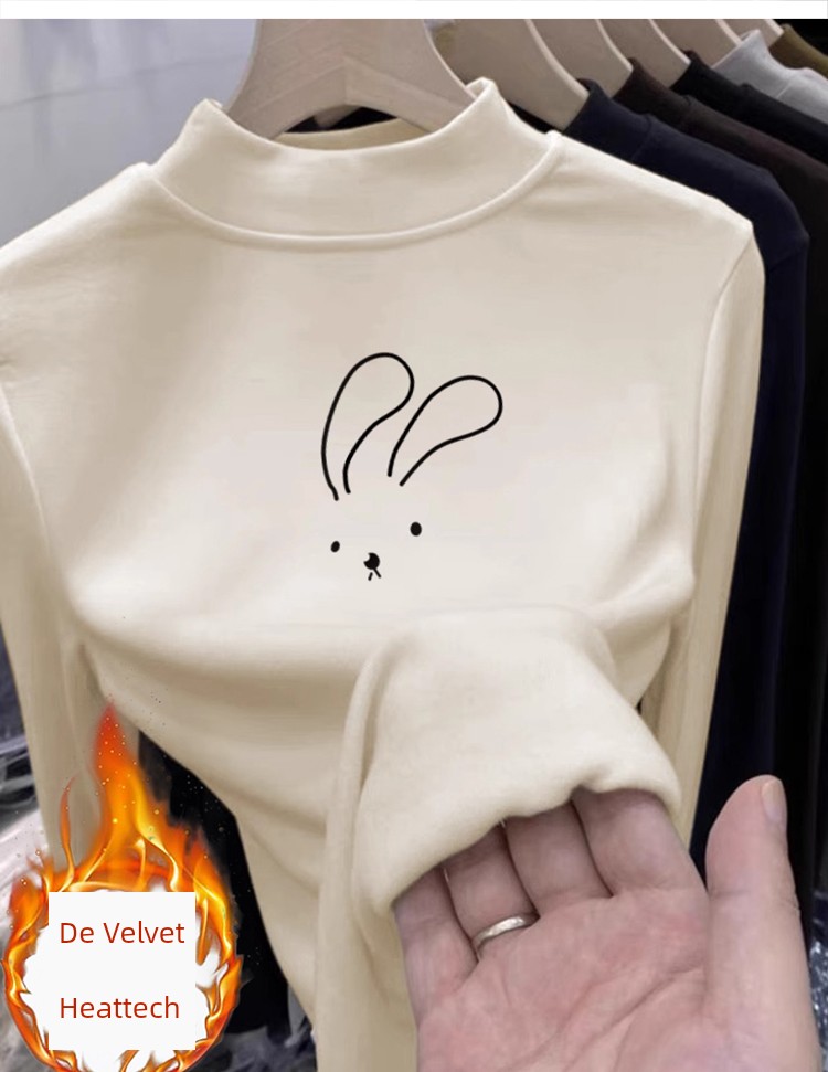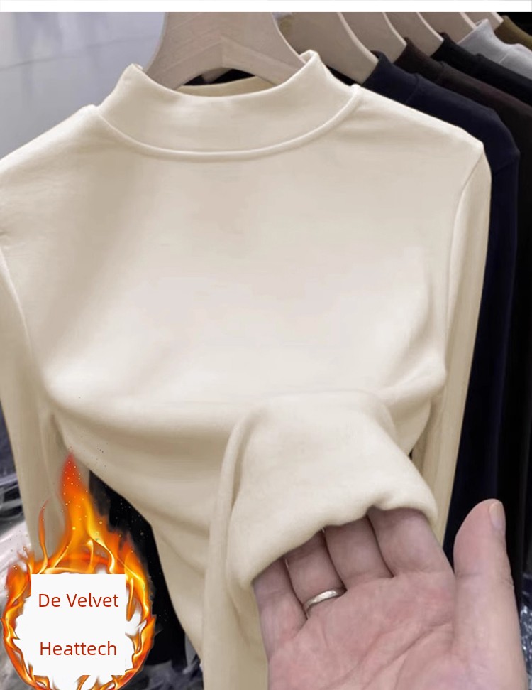 Dralon 半高领打底衫 女 2025秋冬白色长袖T恤 女 加绒加厚内搭西式上衣