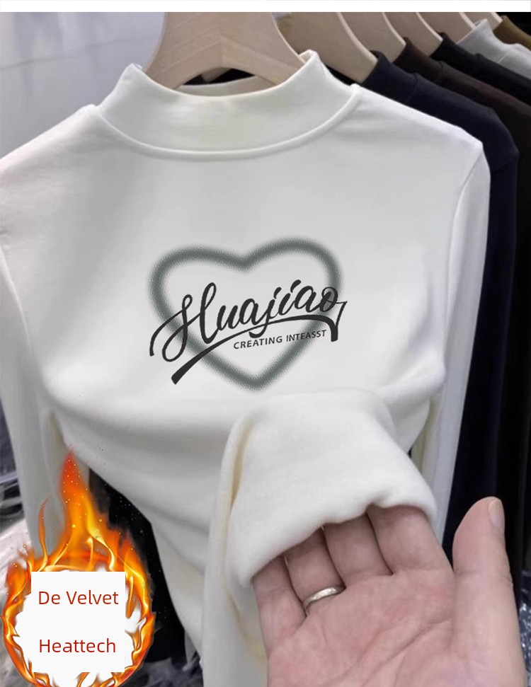呢子半高领T恤 女秋冬款独特点小个子上衣白色长袖T恤内穿保暖打底衫