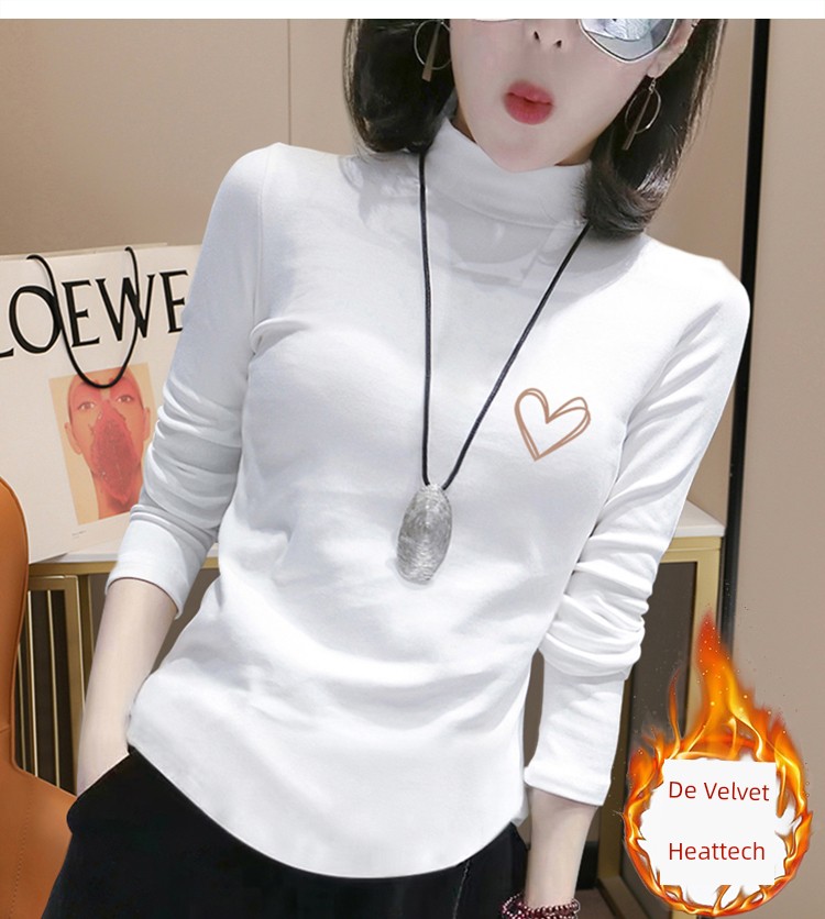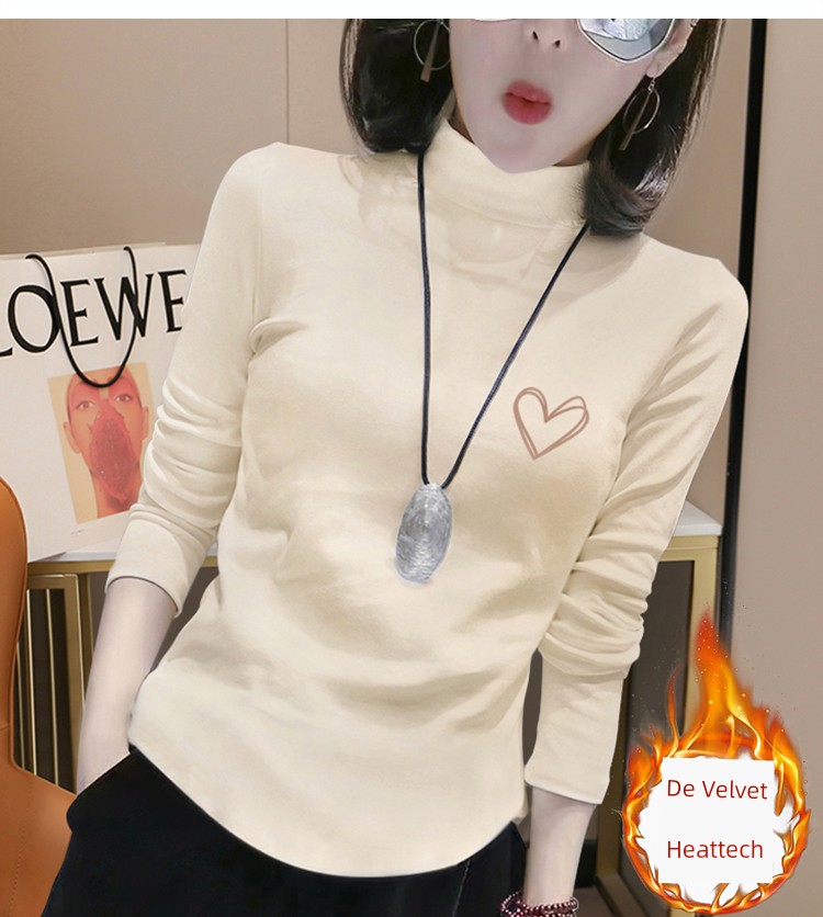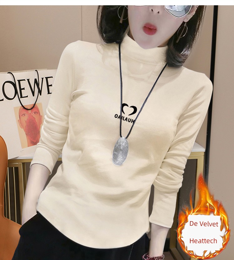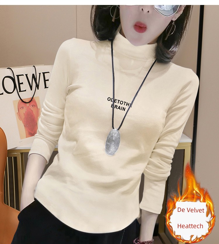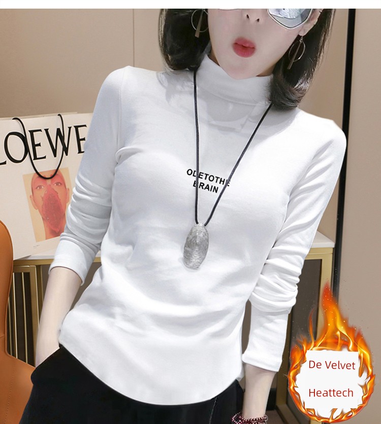 欧货衬衫2025秋冬新款中领德绒长袖T恤 女修身半高领内搭打底衫
