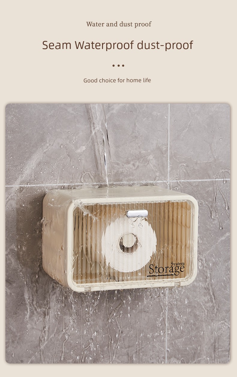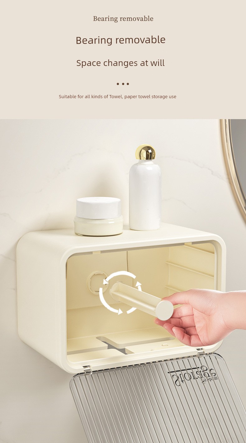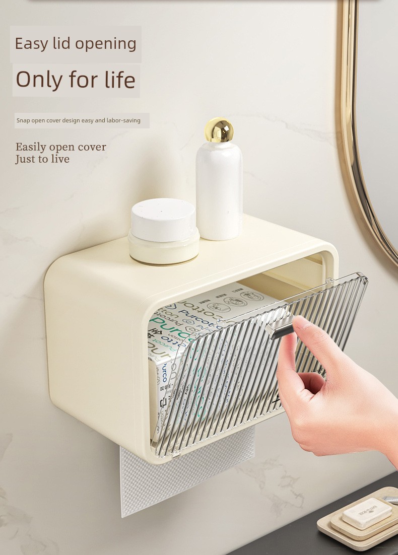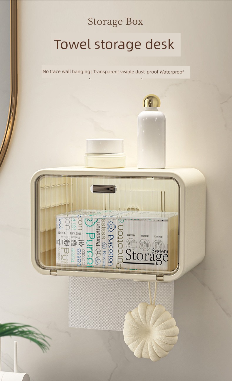 面巾收纳盒 冲孔免打孔 墙挂式 化妆品收纳盒 塑料带盖收纳盒 浴室收纳