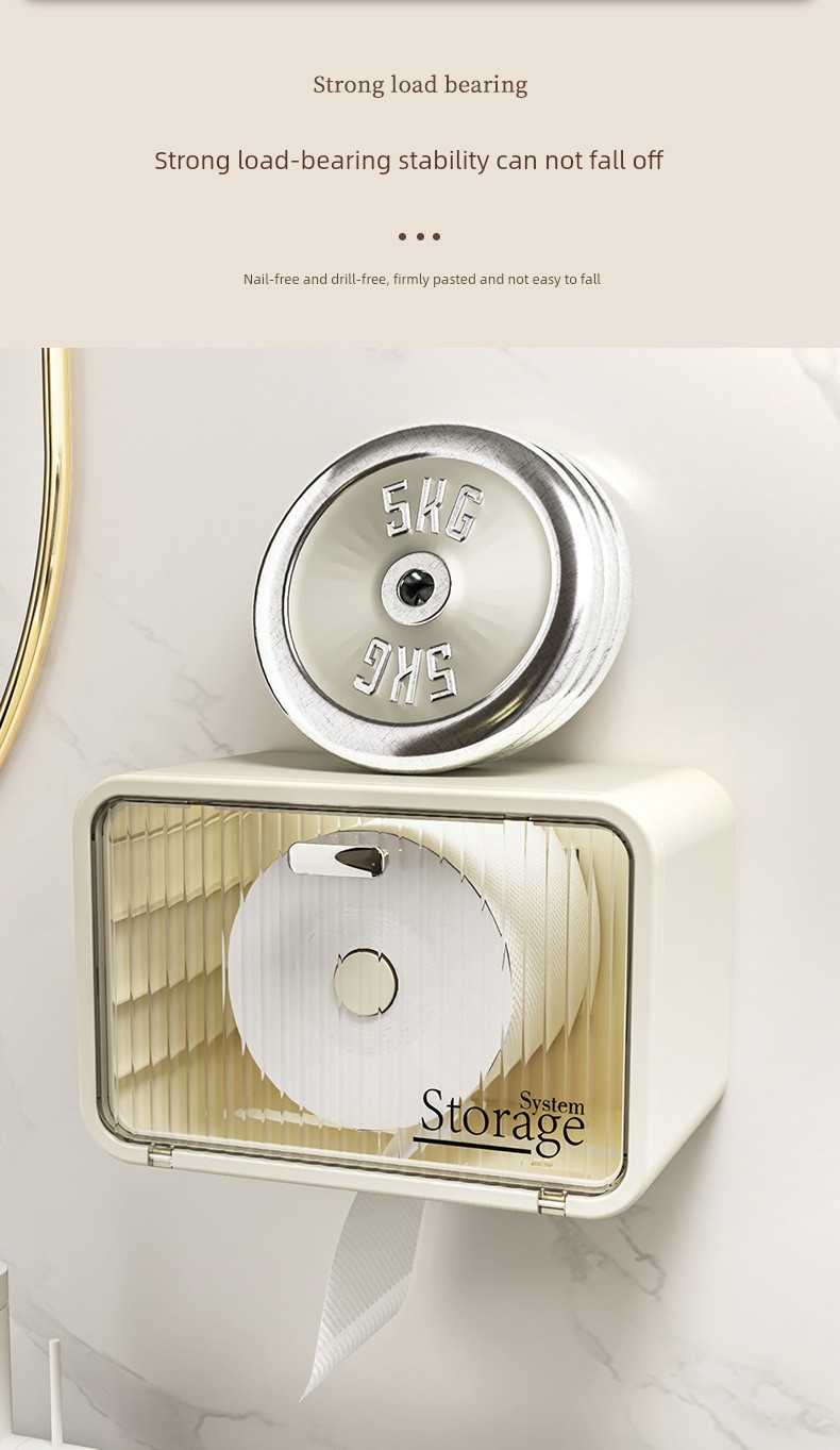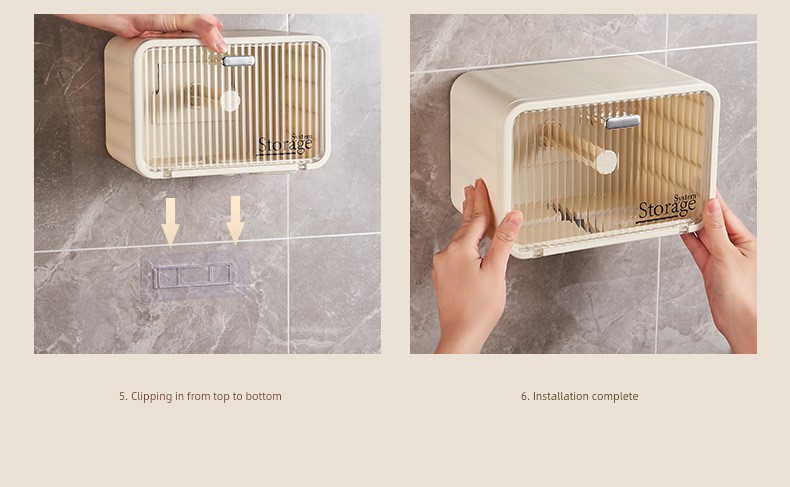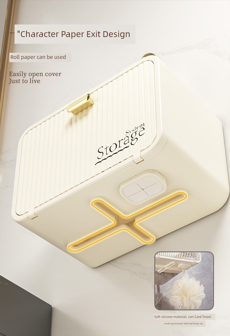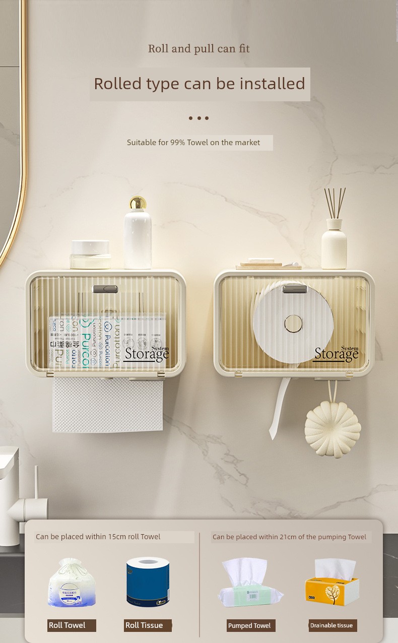 面巾收纳盒 冲孔免打孔 墙挂式 化妆品收纳盒 塑料带盖收纳盒 浴室收纳
