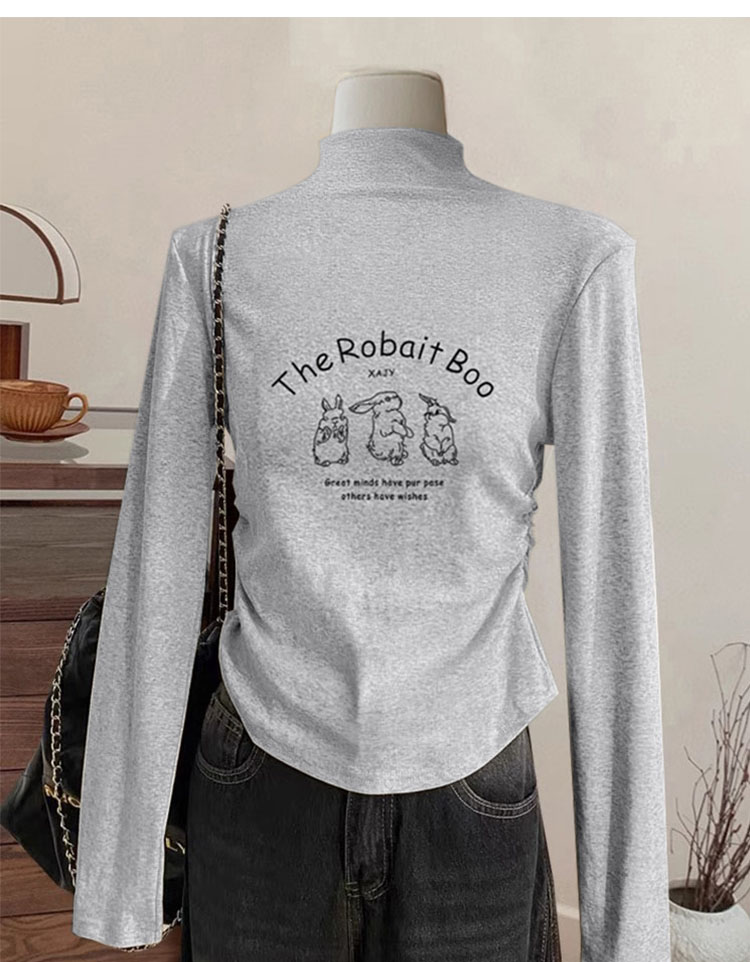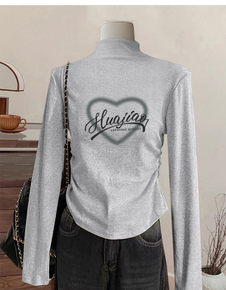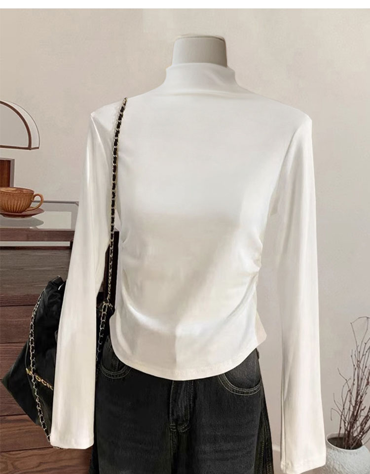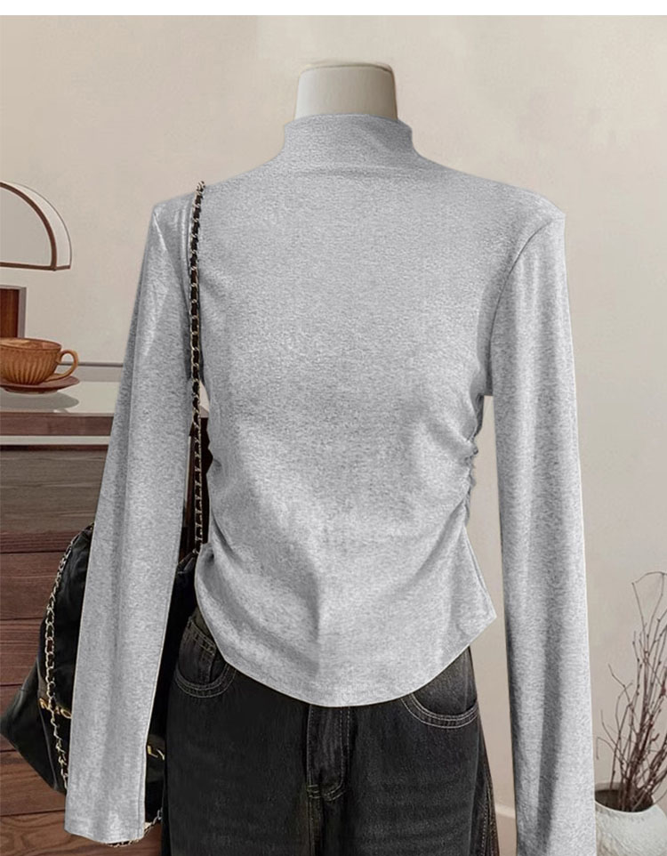 秋冬新品双面抓绒半高领长袖内搭修身热感打底衫