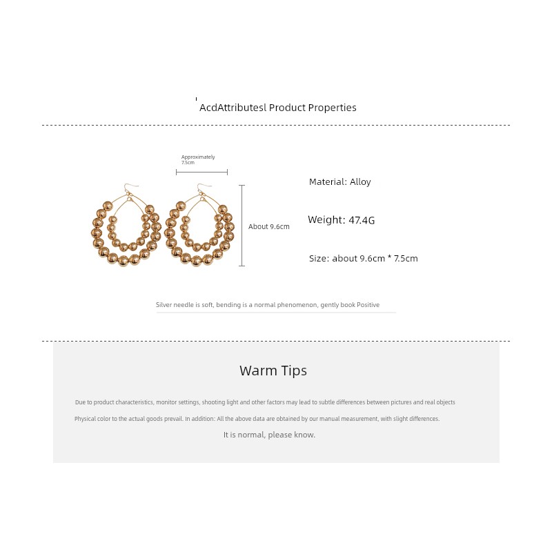 时尚夸张双层珠串耳环 方圆脸修饰轻奢创意耳环 优雅大气耳饰 女