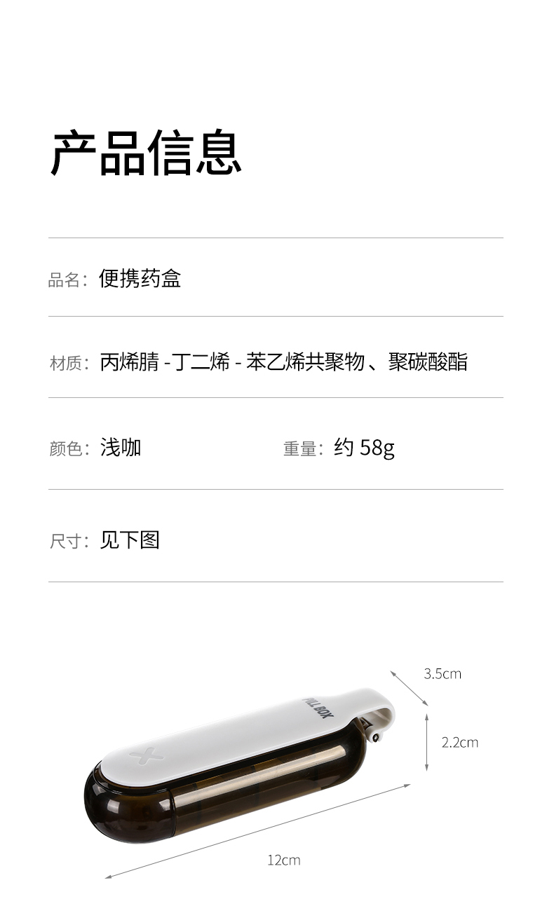 Fasola 药盒 便携式 药品分装盒 随身迷你小药丸收纳盒 避光片剂收纳盒