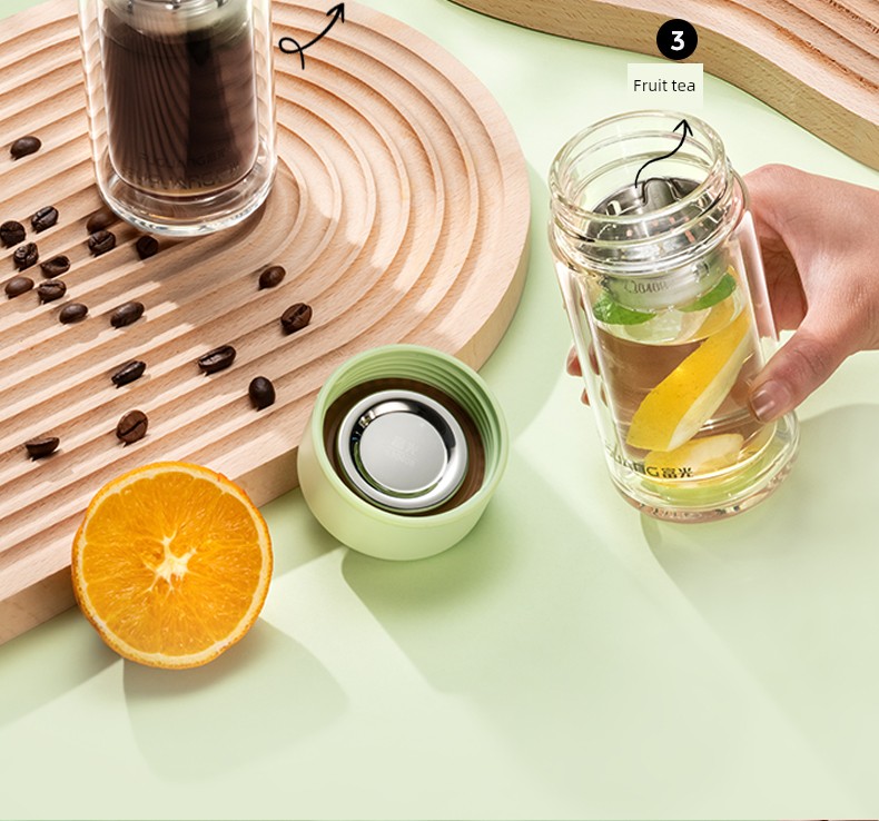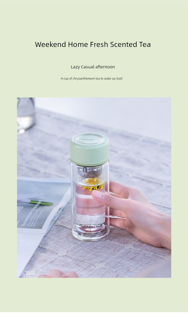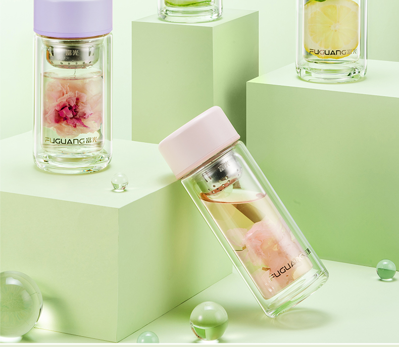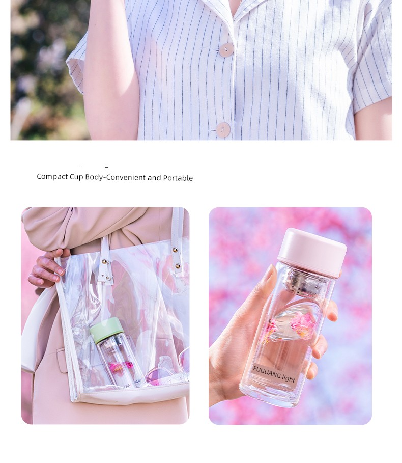 便携女生高硼硅玻璃杯 创意茶水分离水杯