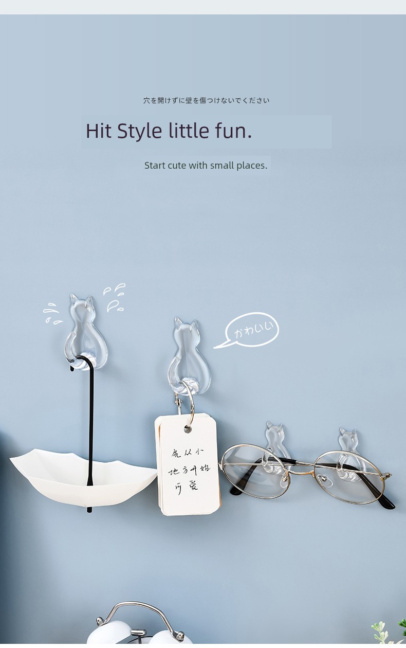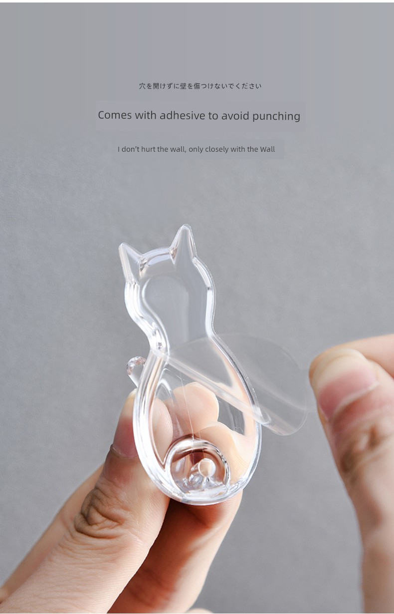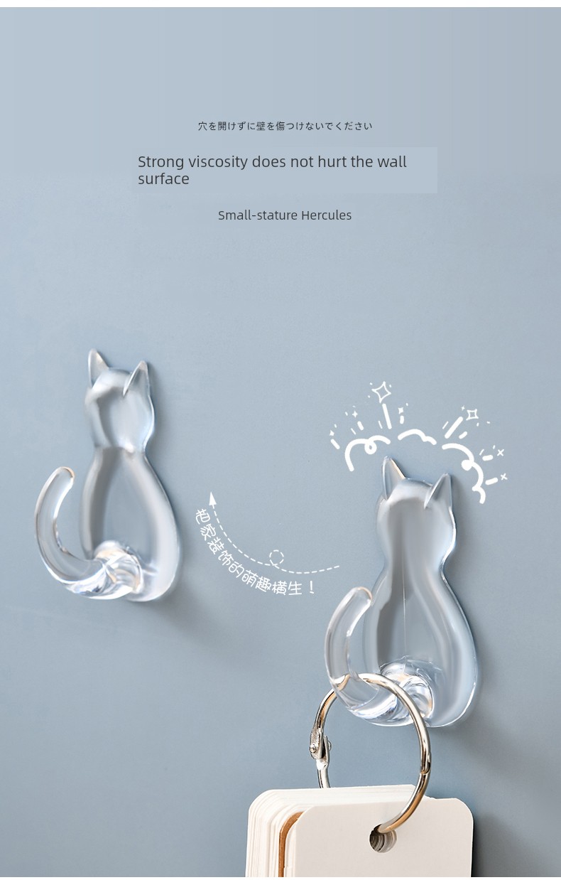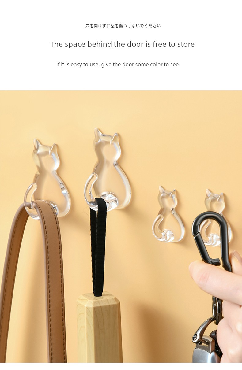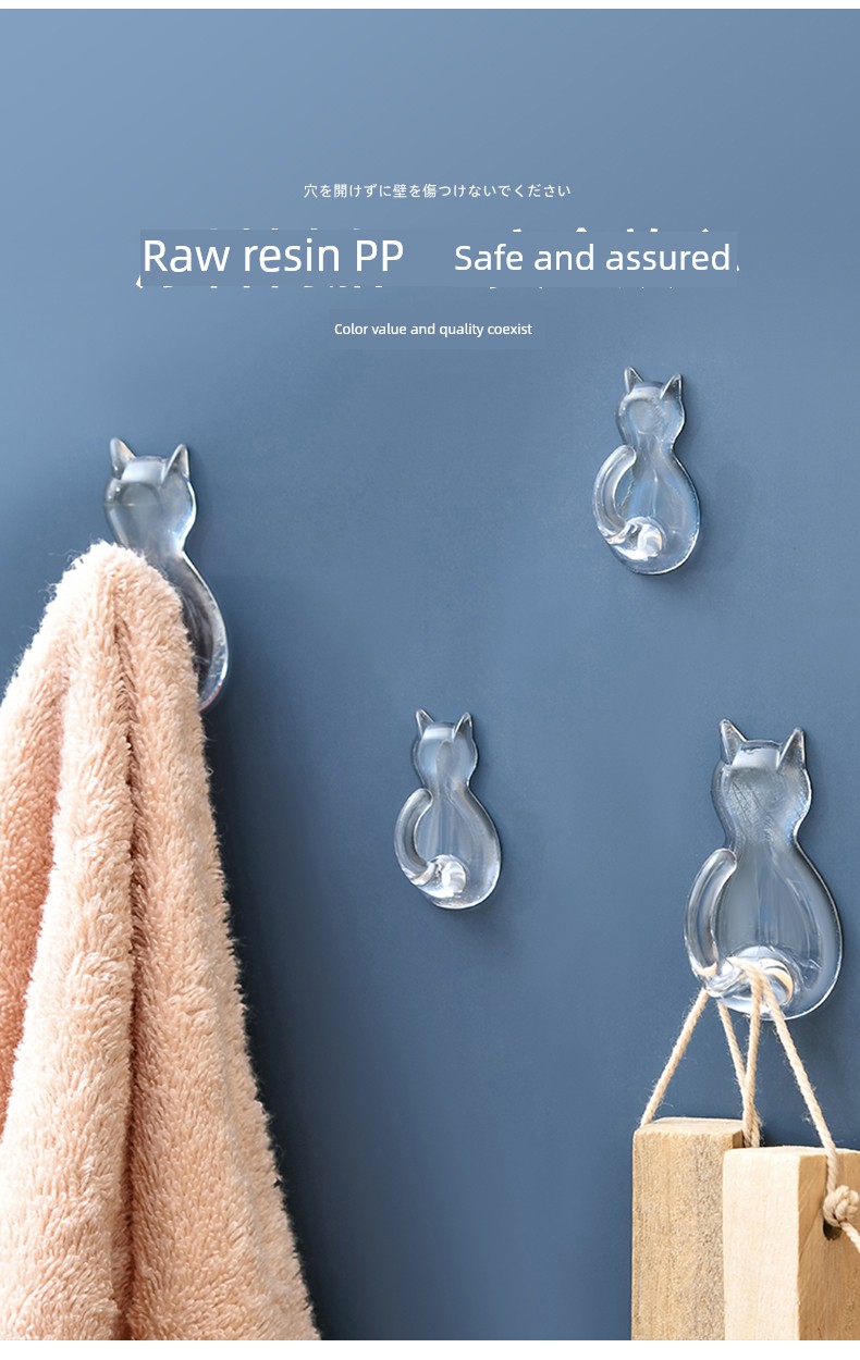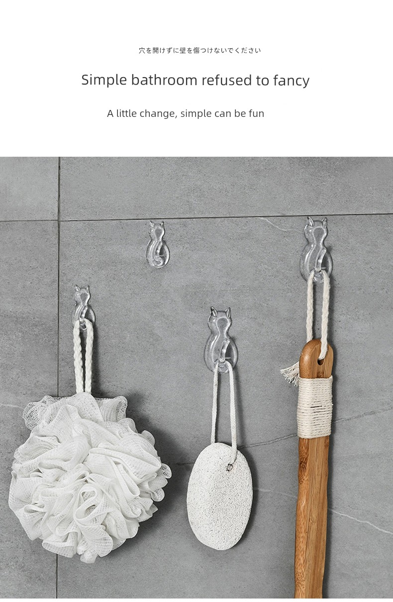 日式Kokubo 透明挂钩 免打孔浴室厨房墙壁挂钩 猫咪无痕吸盘强力粘钩
