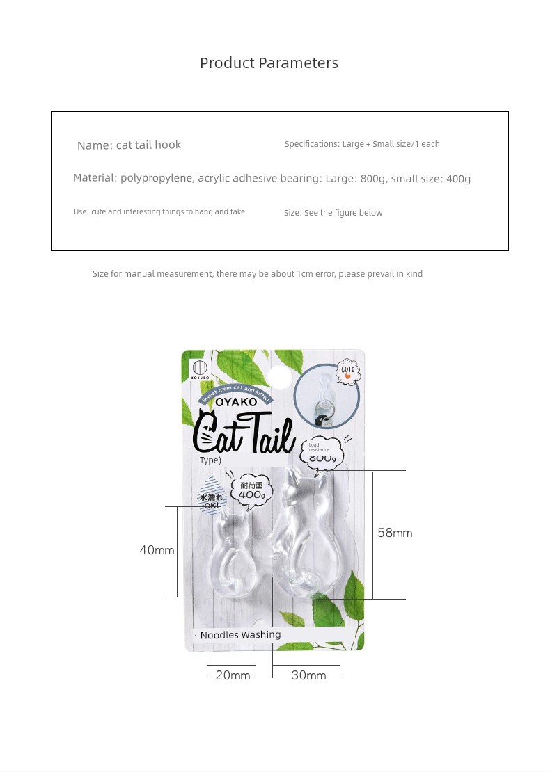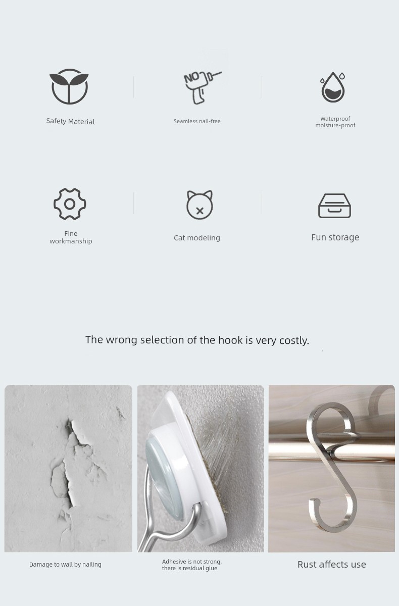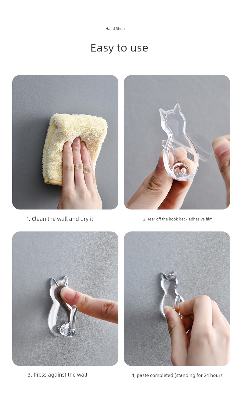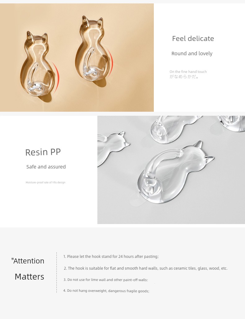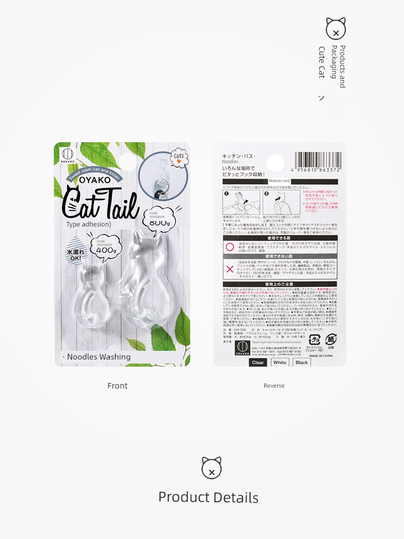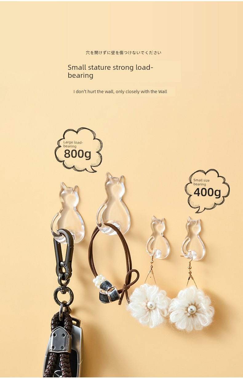 日式Kokubo 透明挂钩 免打孔浴室厨房墙壁挂钩 猫咪无痕吸盘强力粘钩