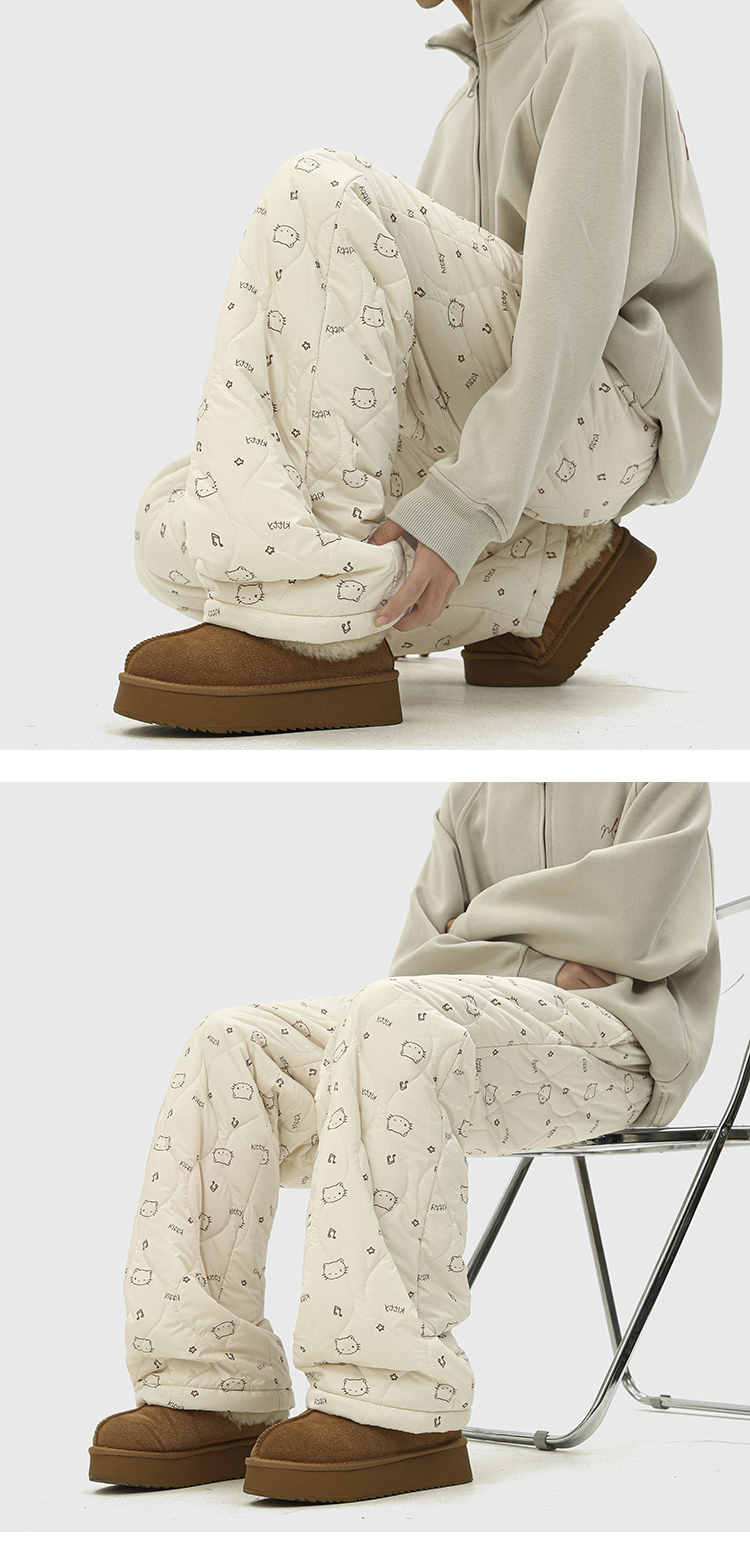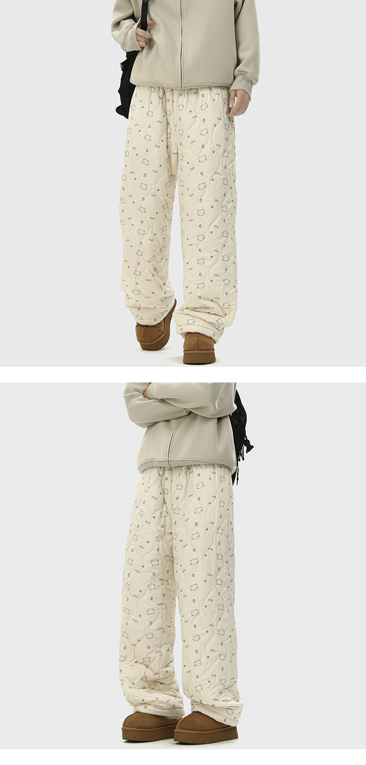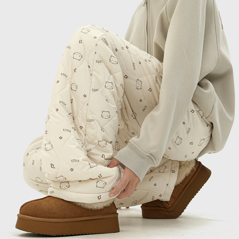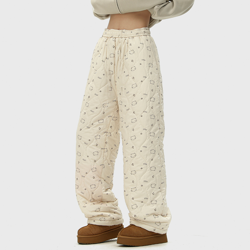 日系复古方格印花宽松加绒棉裤