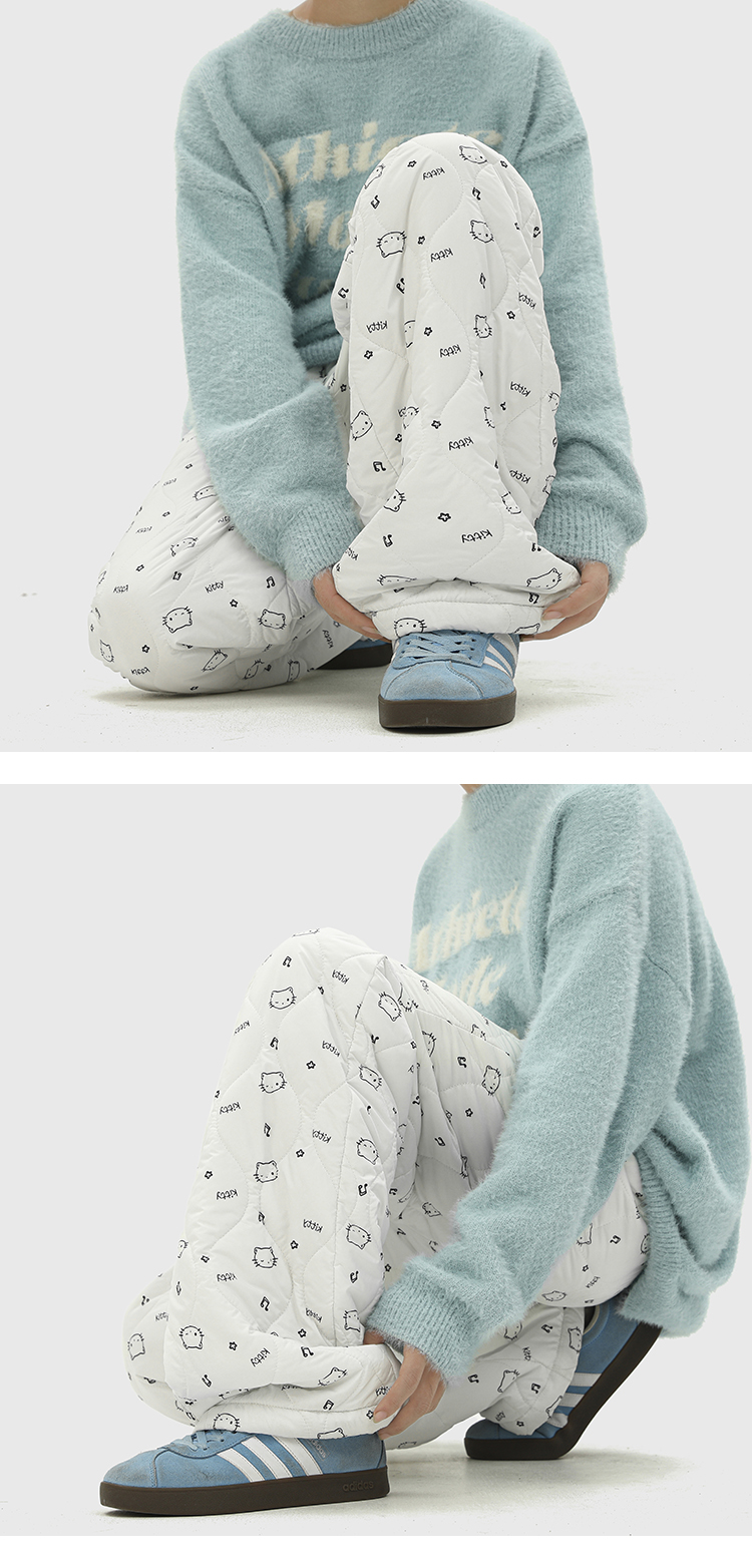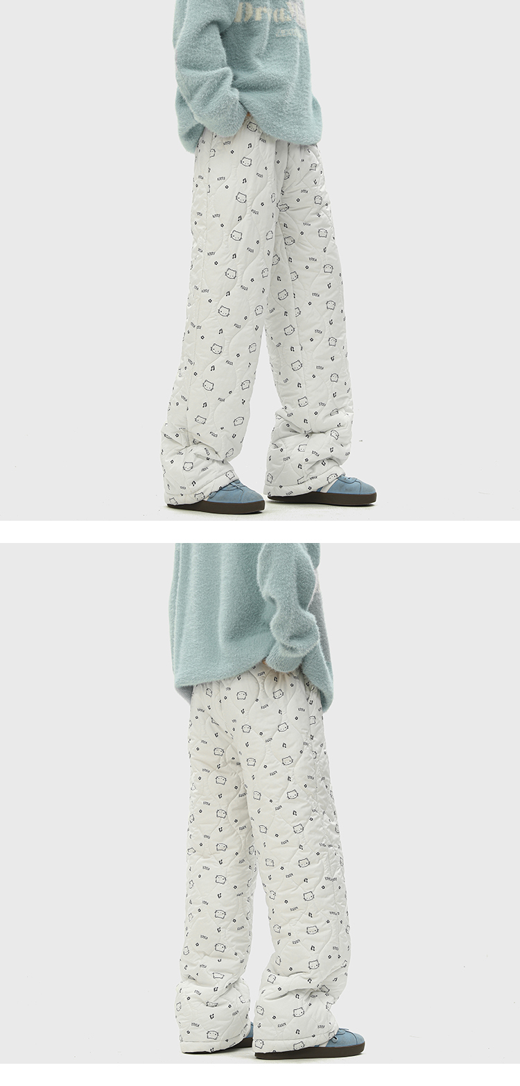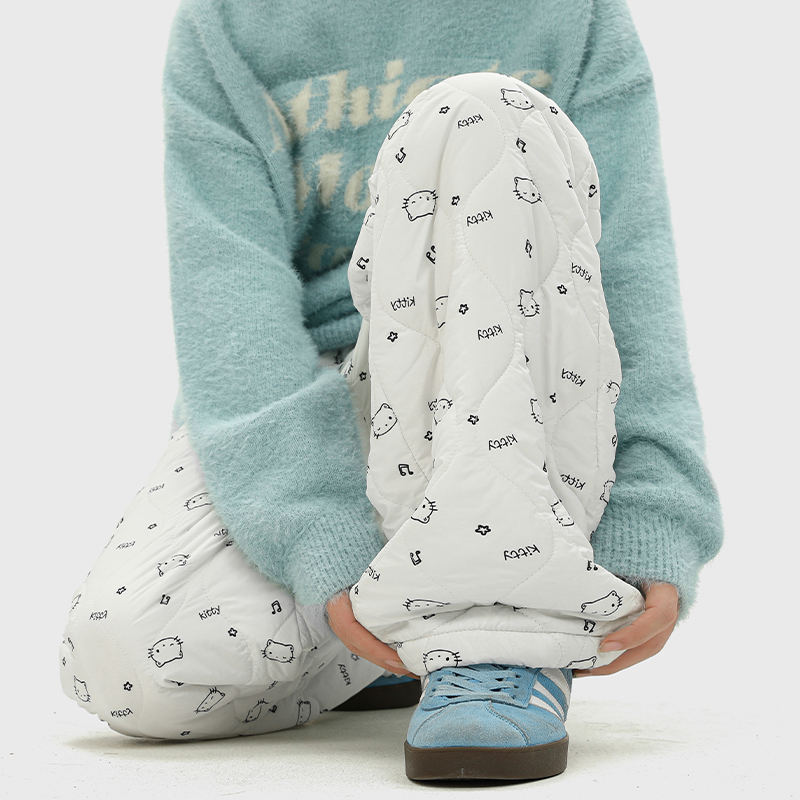 日系复古方格印花宽松加绒棉裤