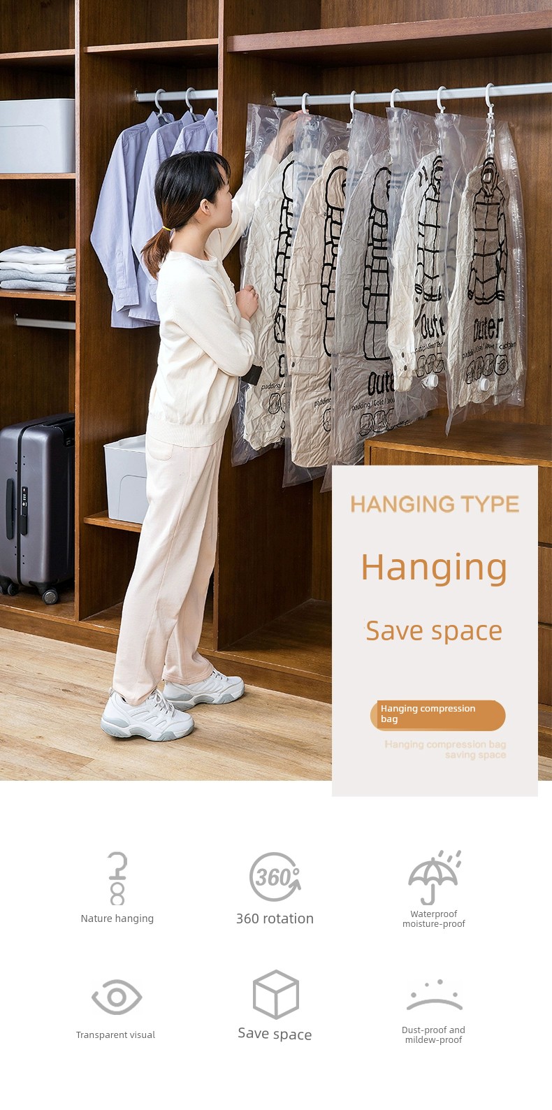 Jujiajia 羽绒服悬挂式真空压缩袋