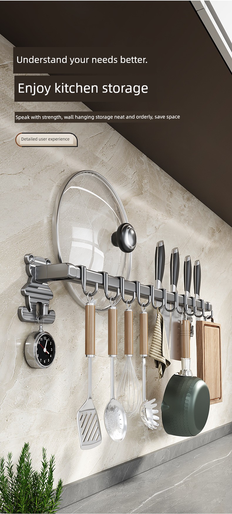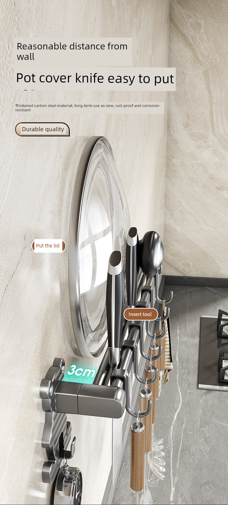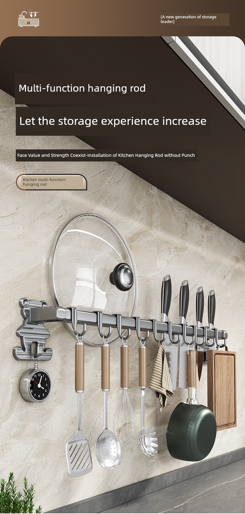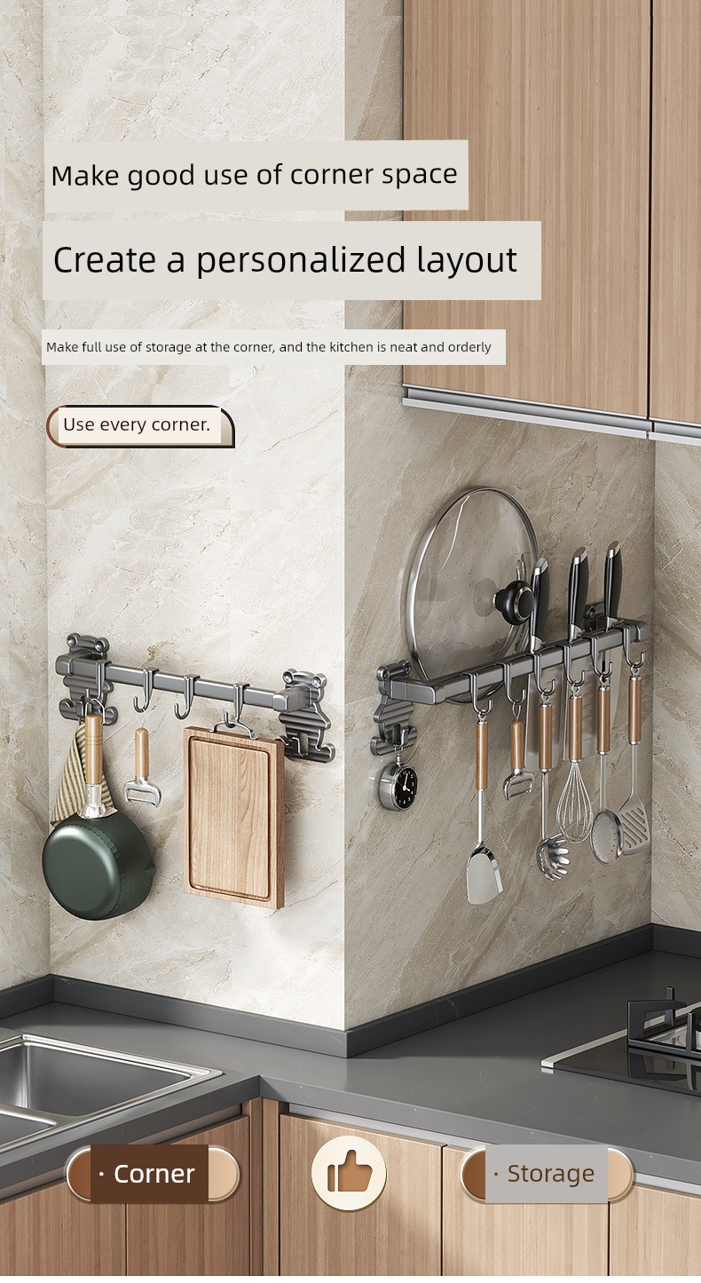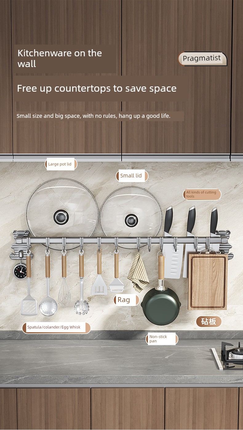 居佳佳厨房挂架 厨房刀具收纳架 免打孔锅盖铲子收纳架 墙挂挂钩 碳钢