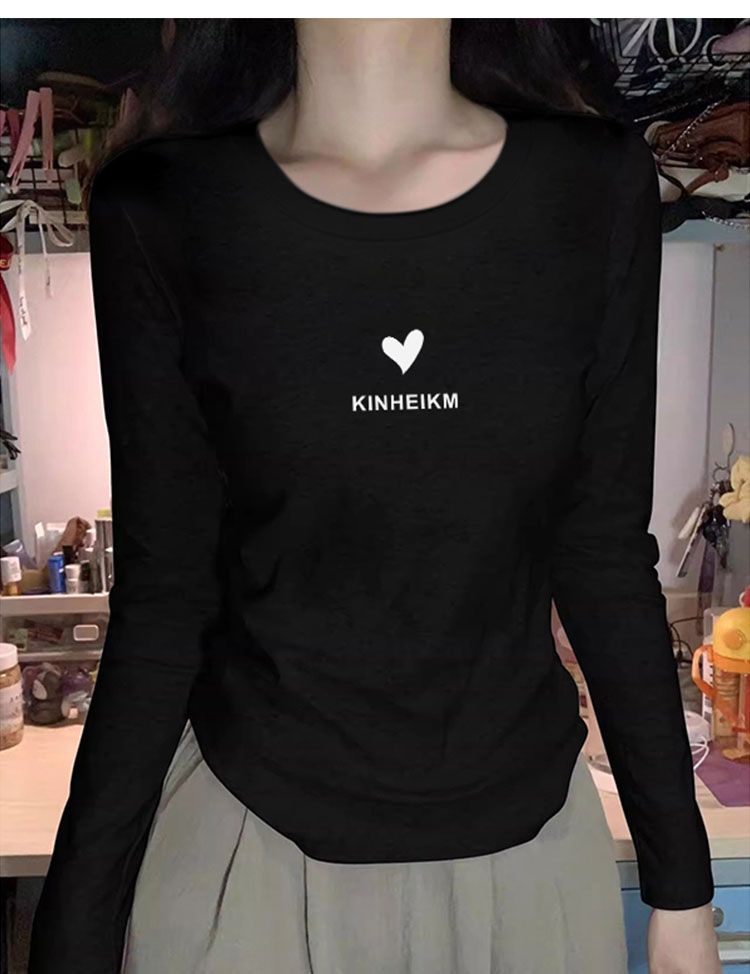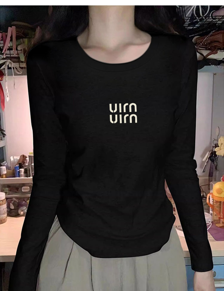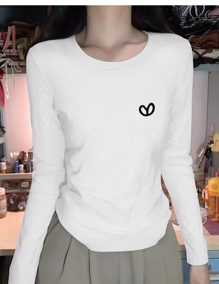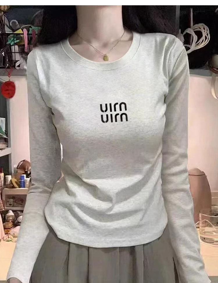 女士长袖肩部打底衫,适合春秋冬,新款时尚西式褶皱设计T恤内搭,100%纯棉外套