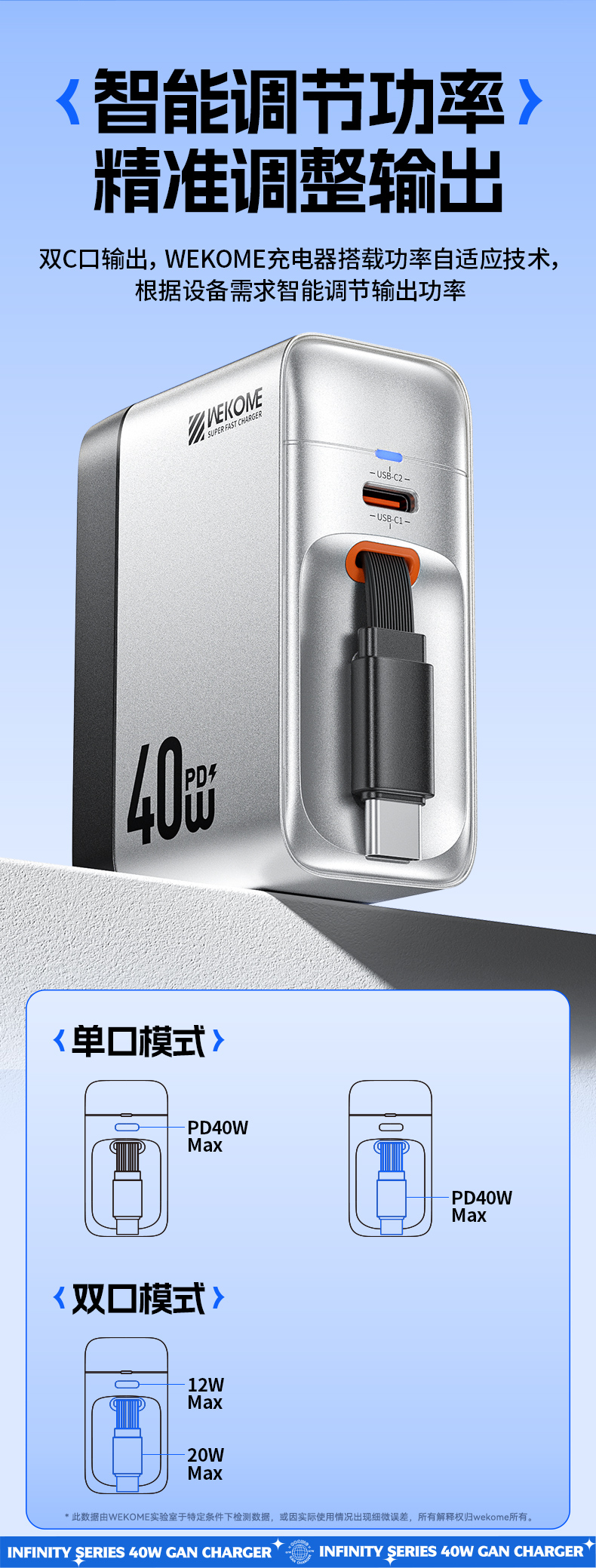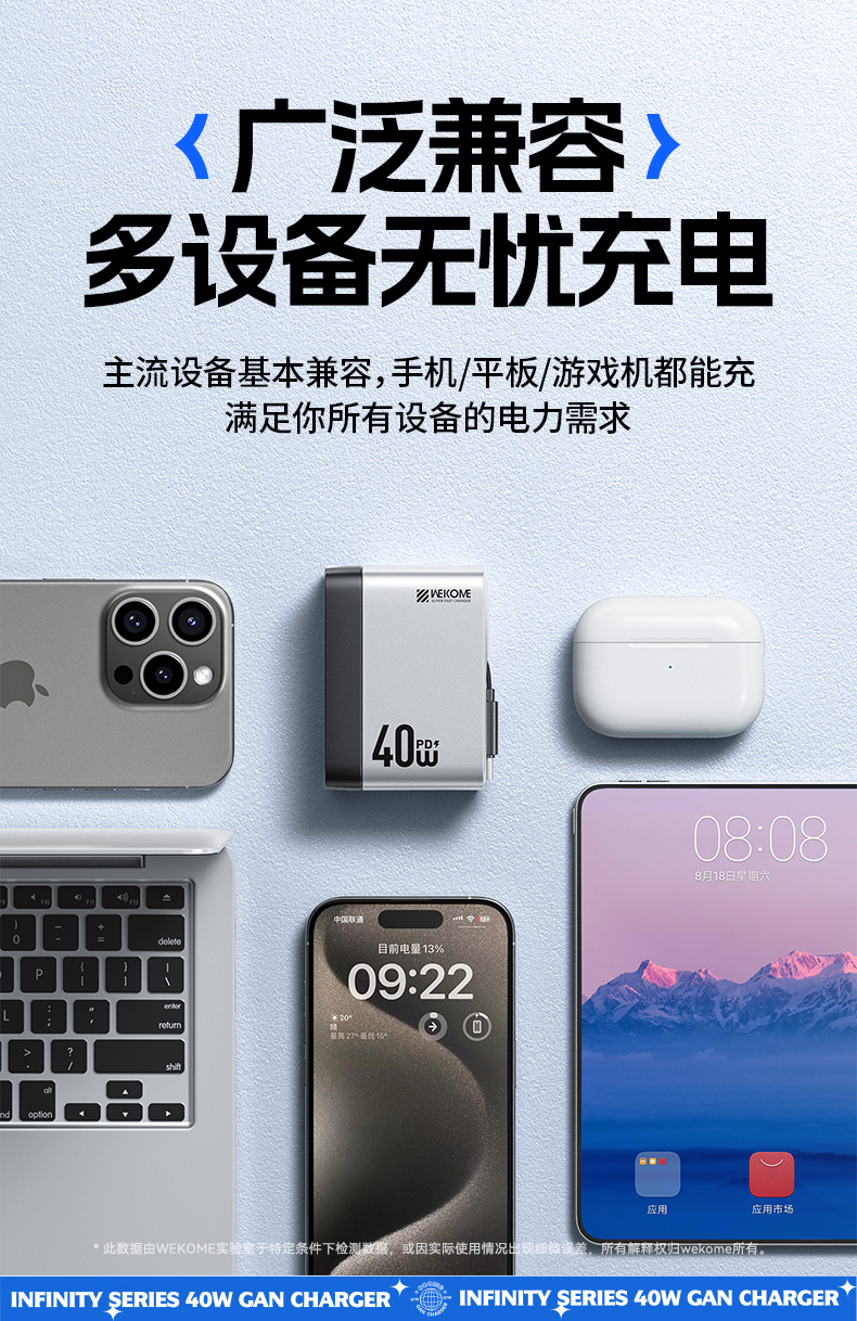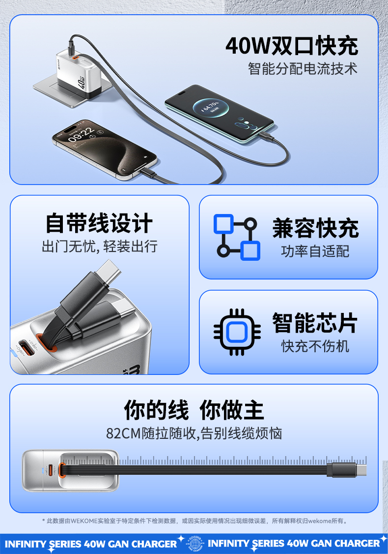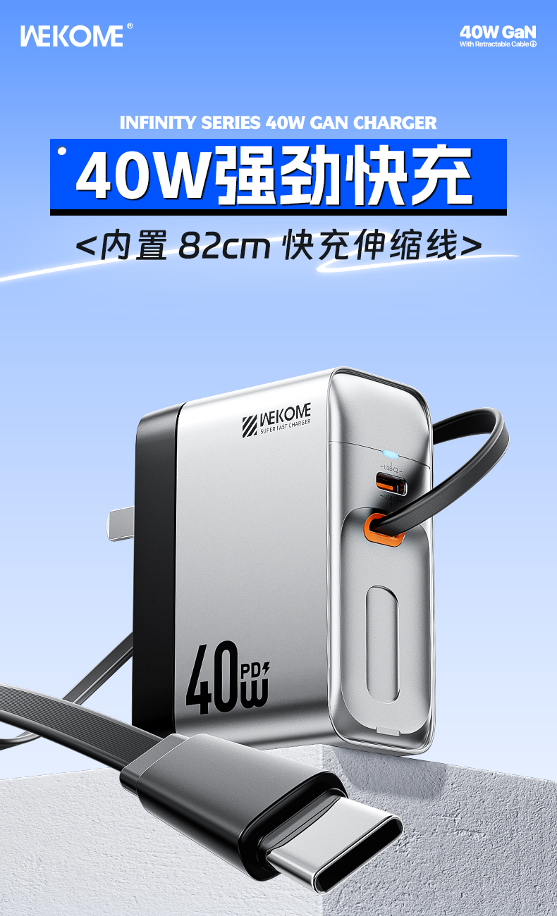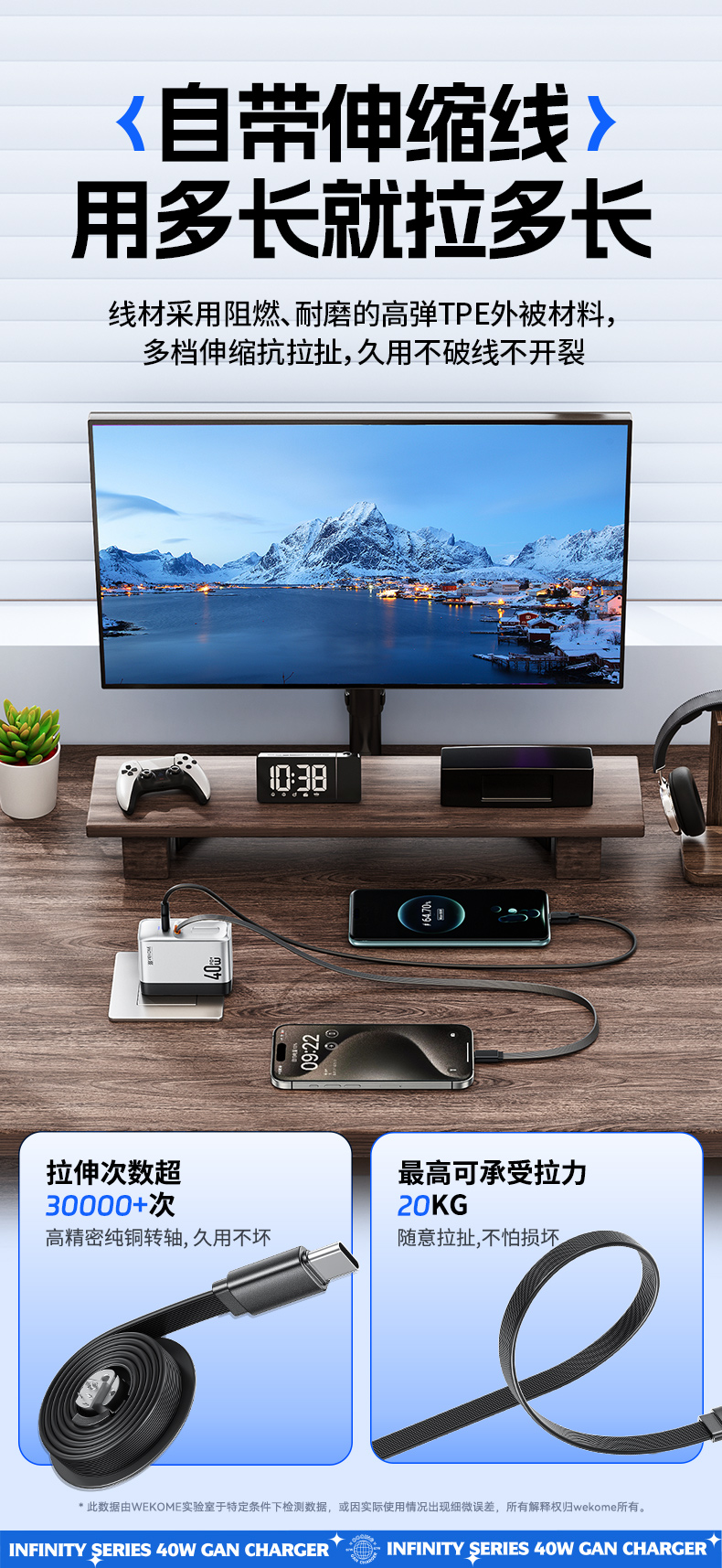 Miaoku 40W氮化镓充电器配伸缩数据线PD快充插头适用于苹果16promax充电插头iPhone15/14手机笔记本Typec平板