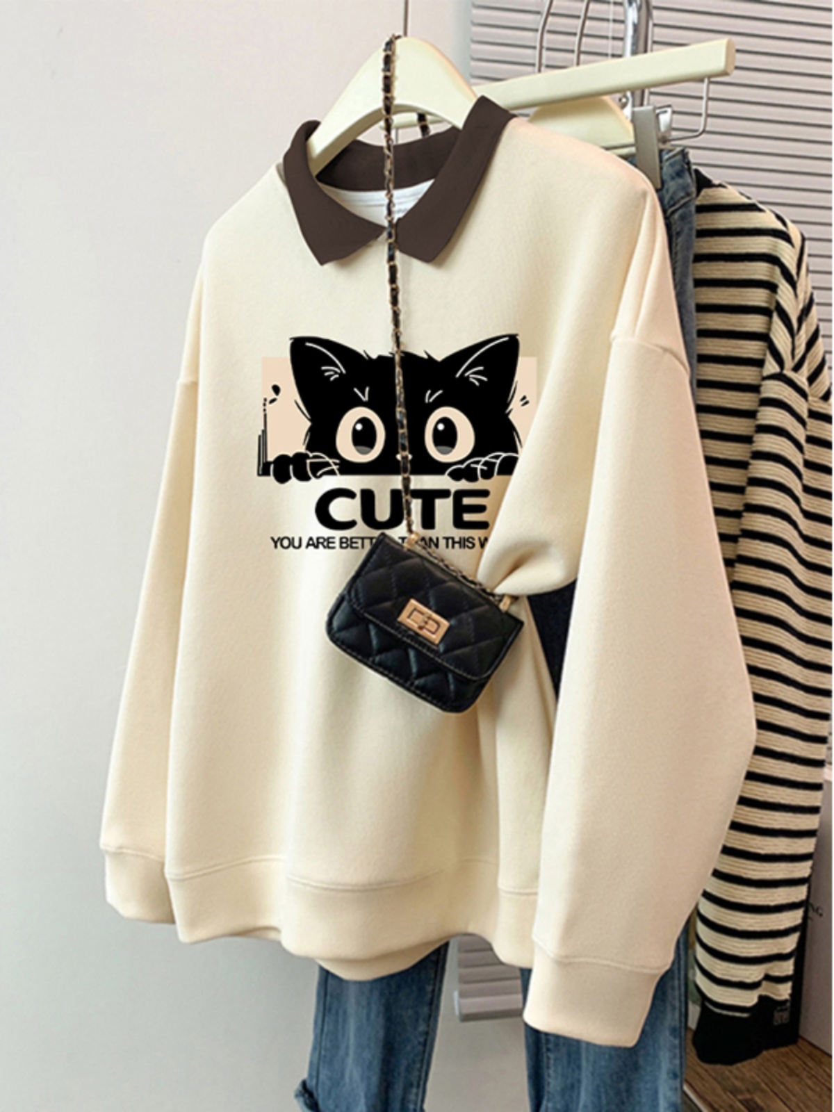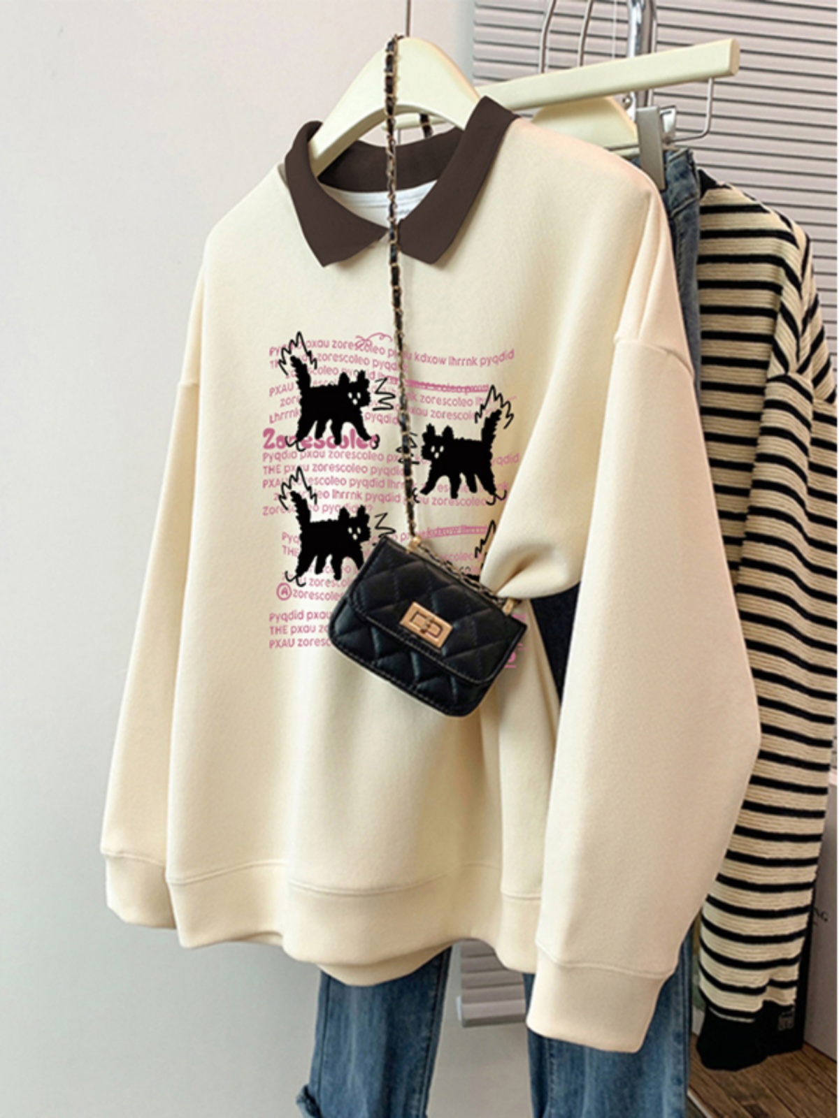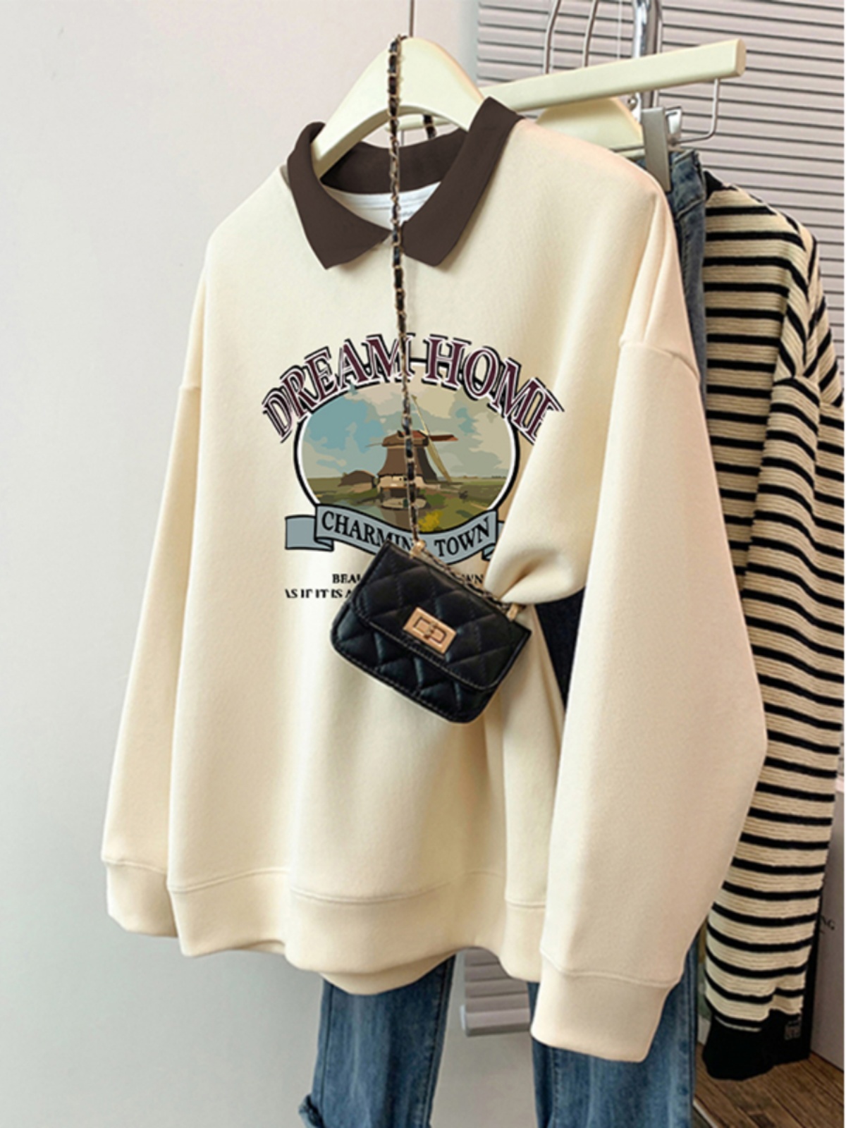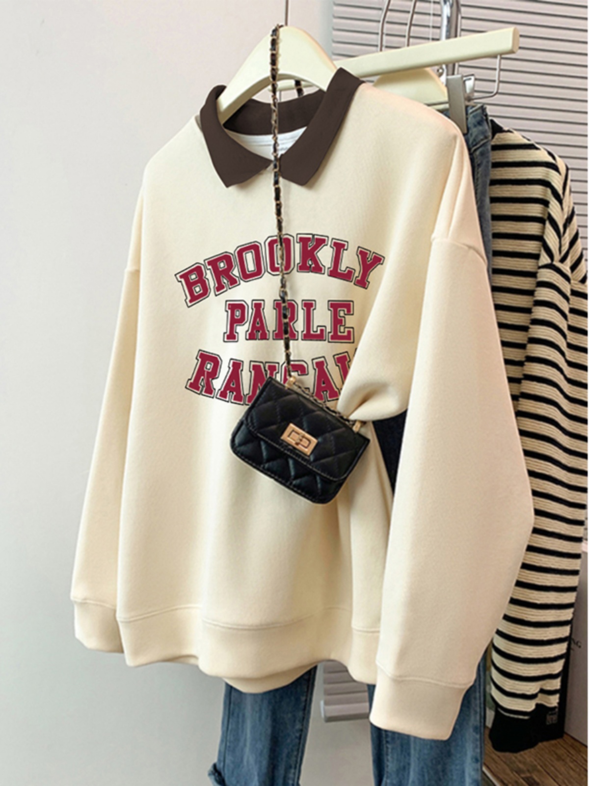 Polo领卫衣 女 秋冬季新款设计感小众风格减龄大码宽松翻领带绒修身外套潮
