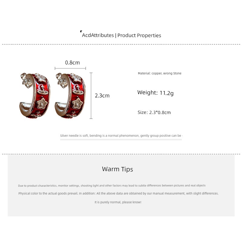 复古滴油金属星星C形耳钉 女士 触手可及的奢华 时尚优雅耳环 新品上市 时尚百搭耳环