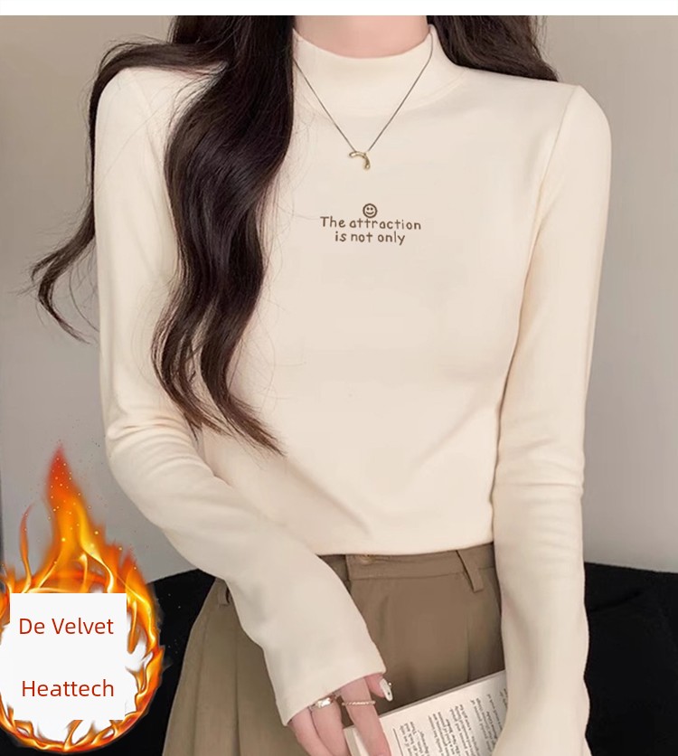 落肩Dralon半高领打底衫女2025内搭秋冬款抓绒加厚砂洗面料长袖保暖潮