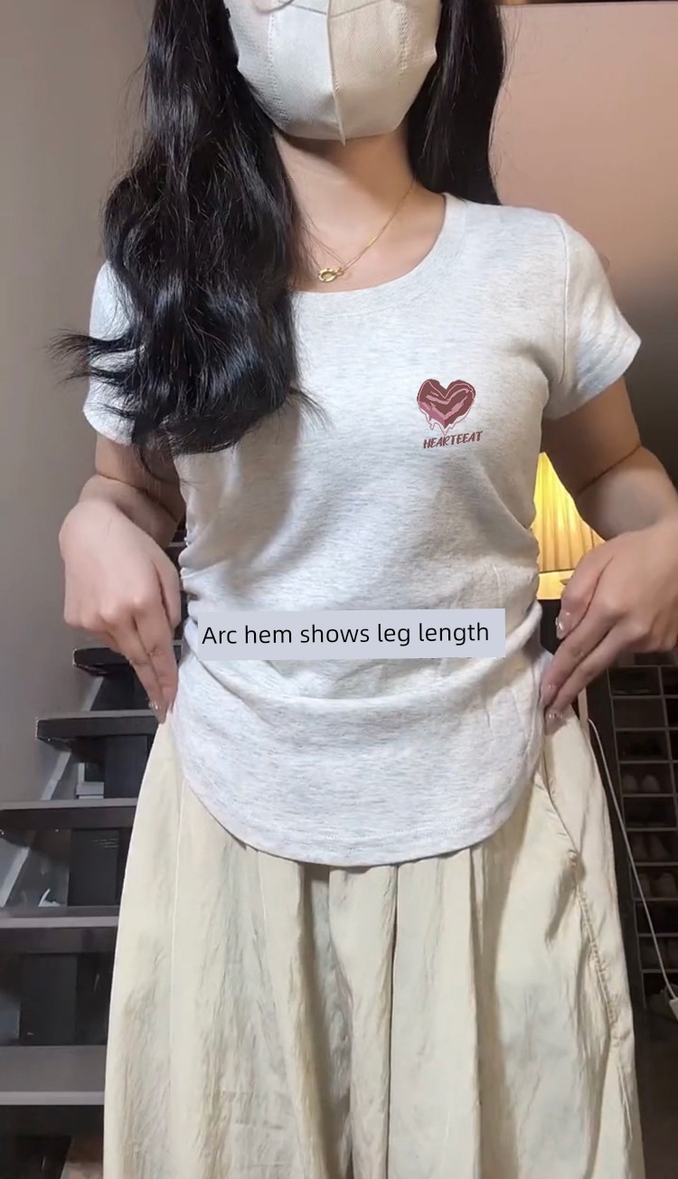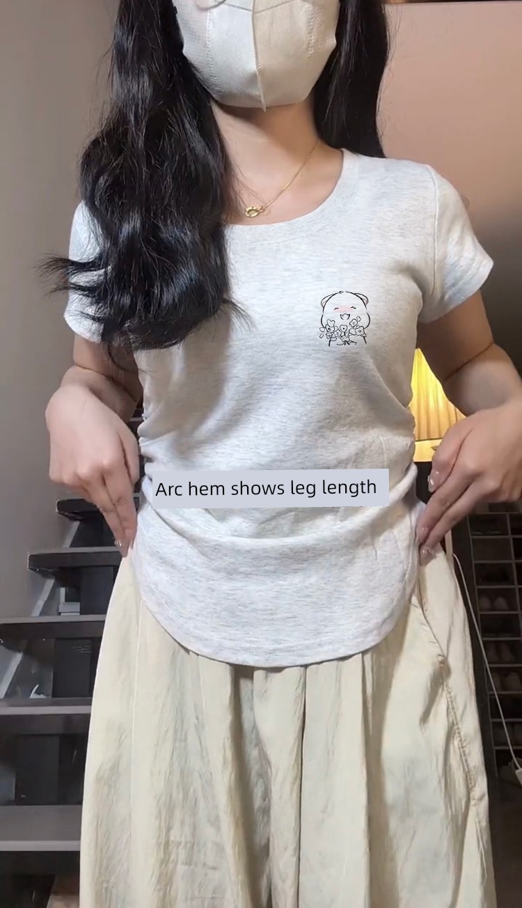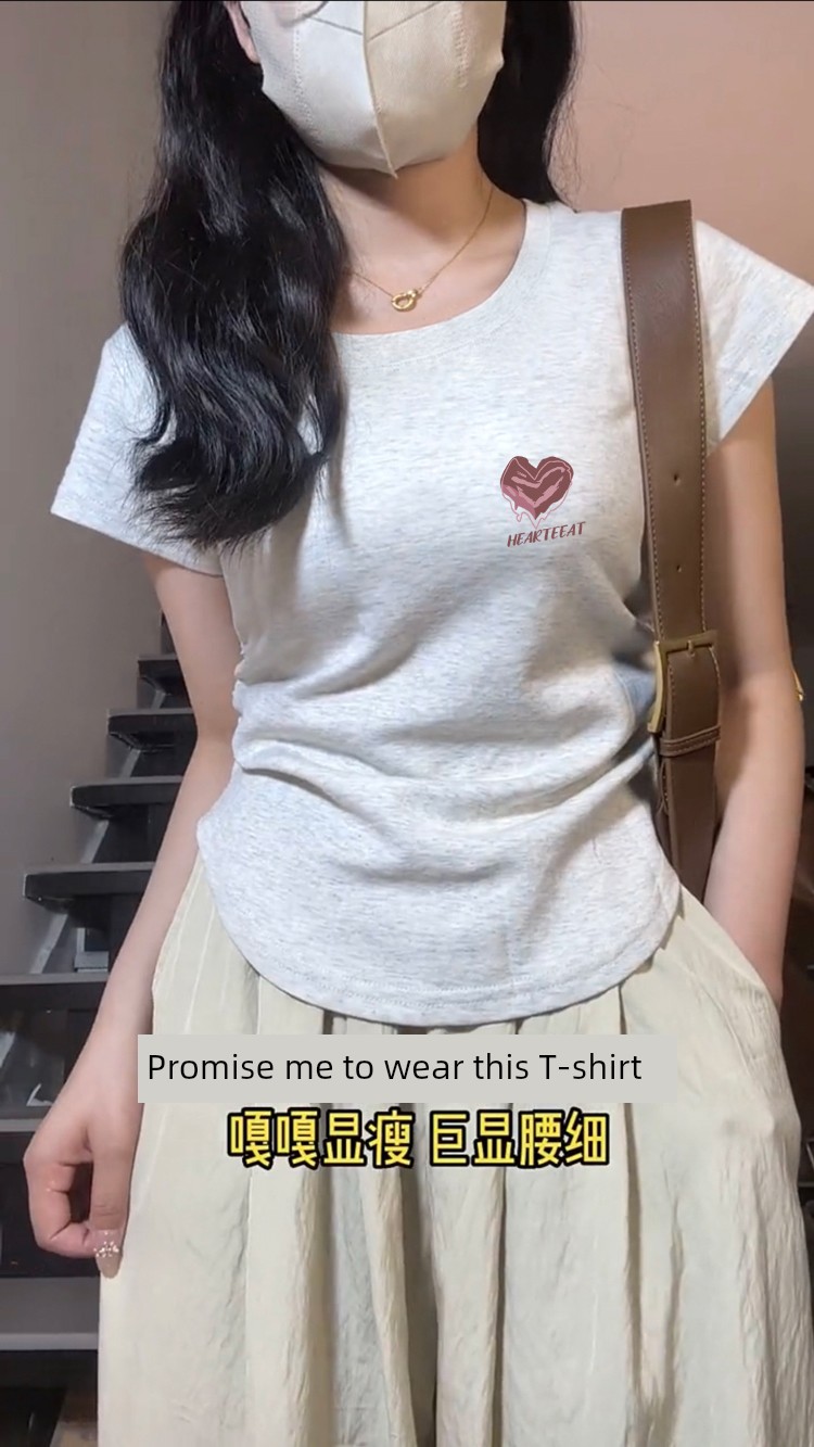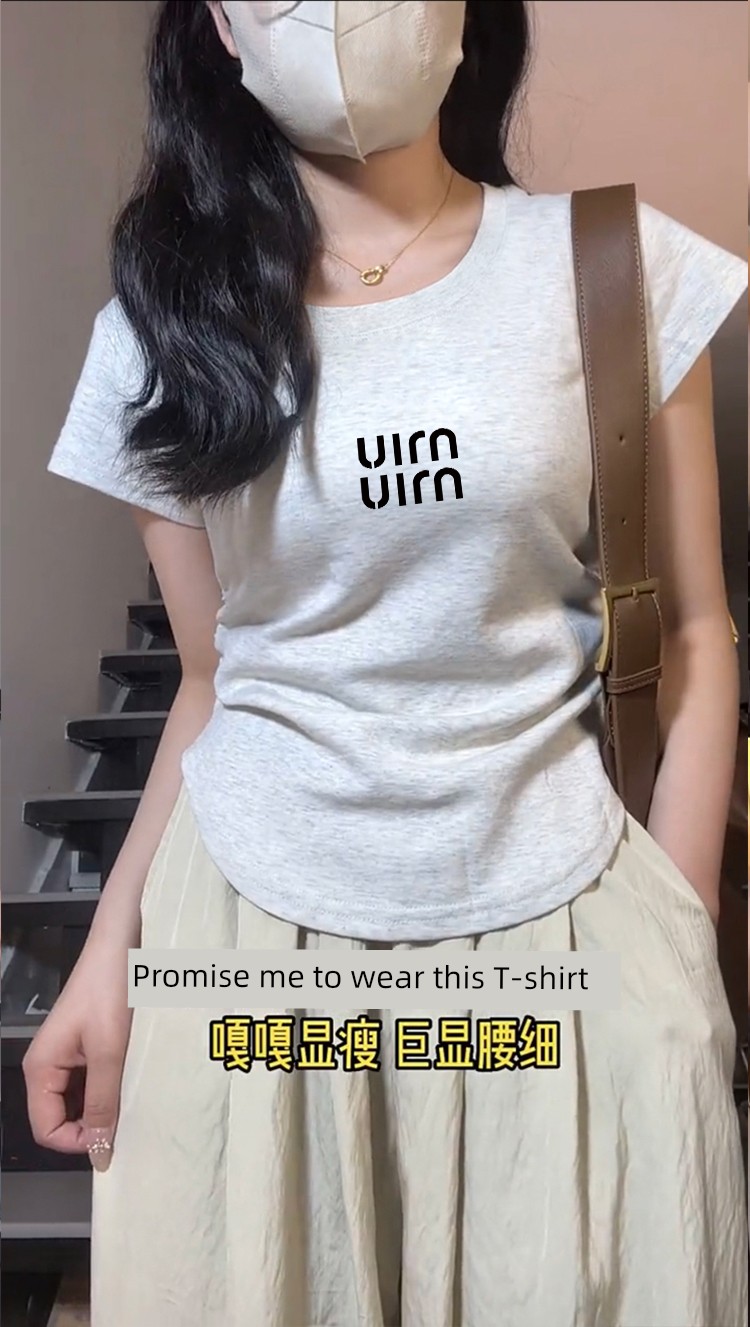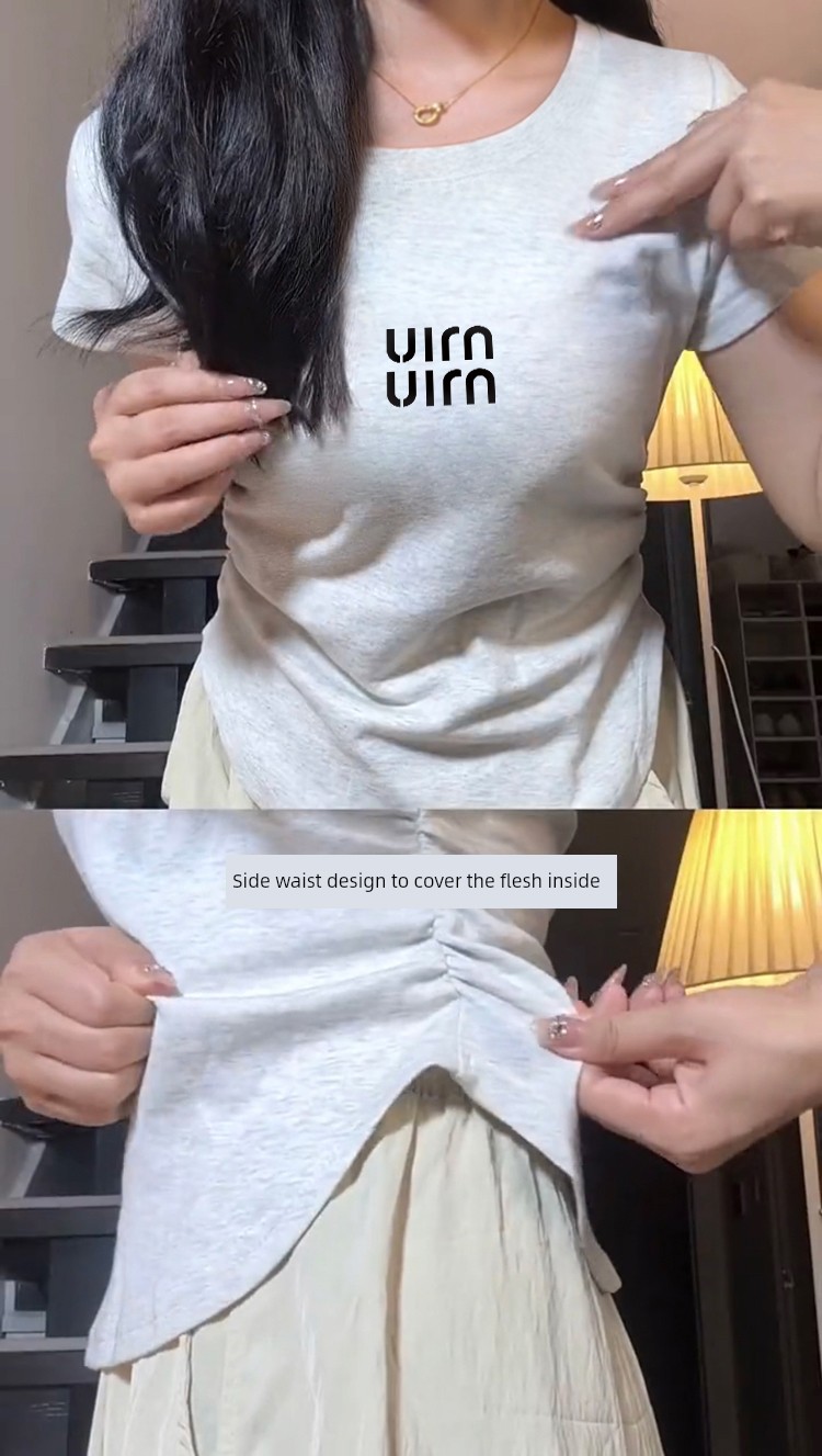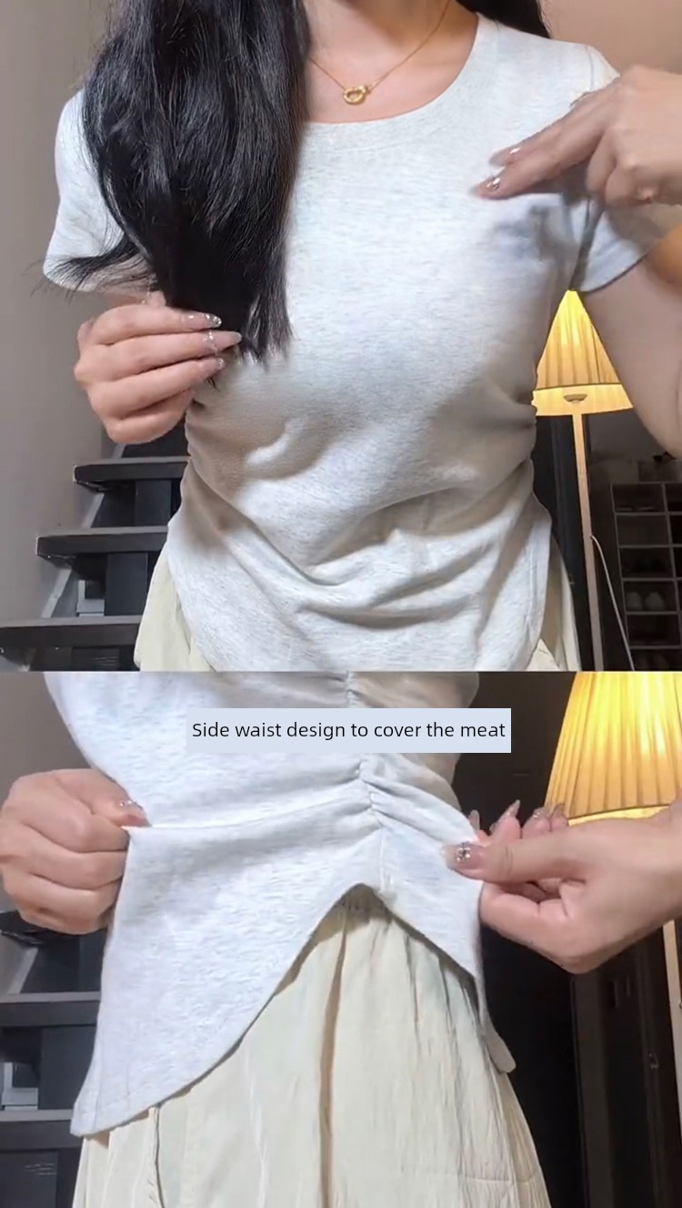 春夏新款时尚纯棉褶皱肩短袖T恤
